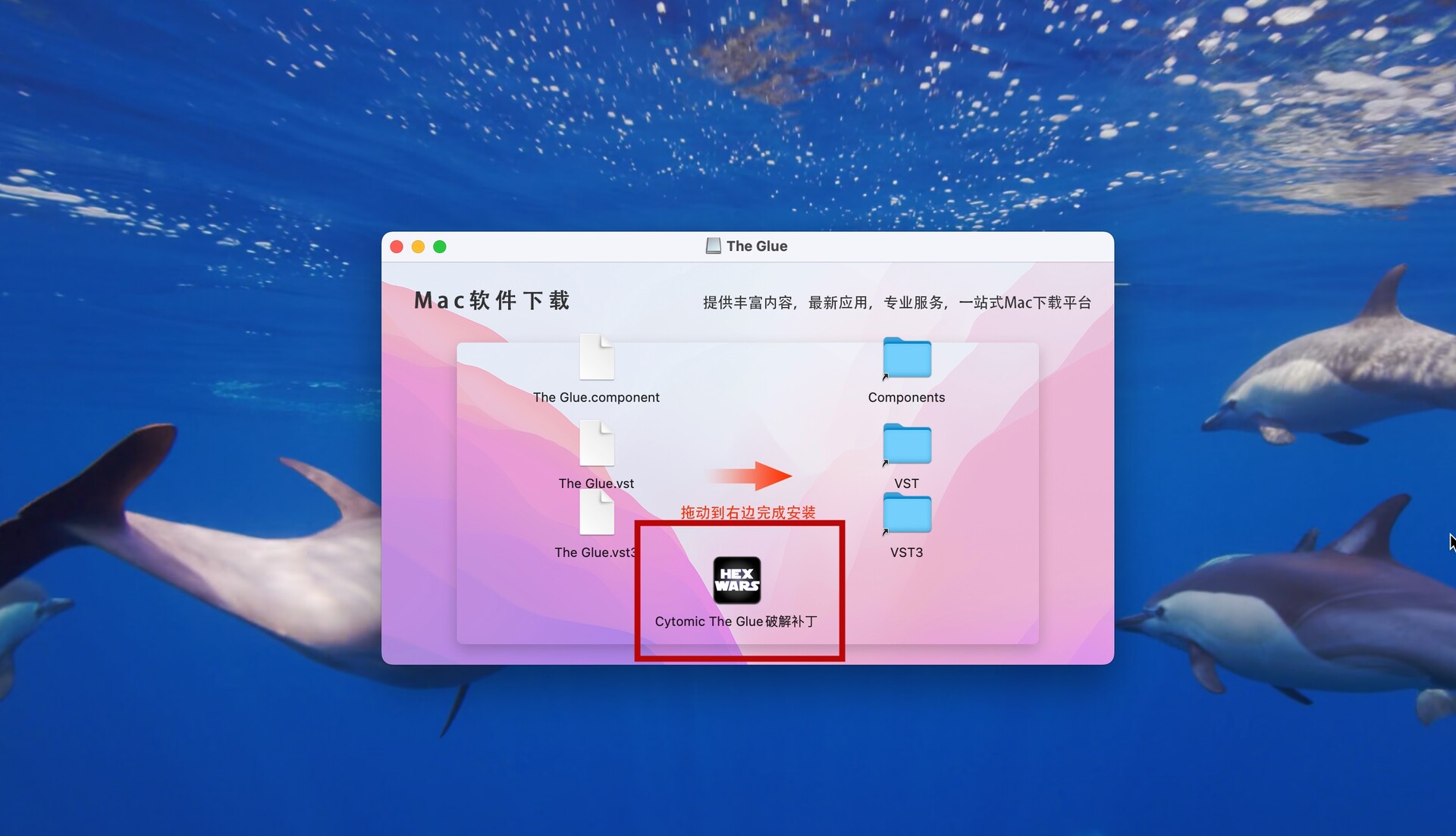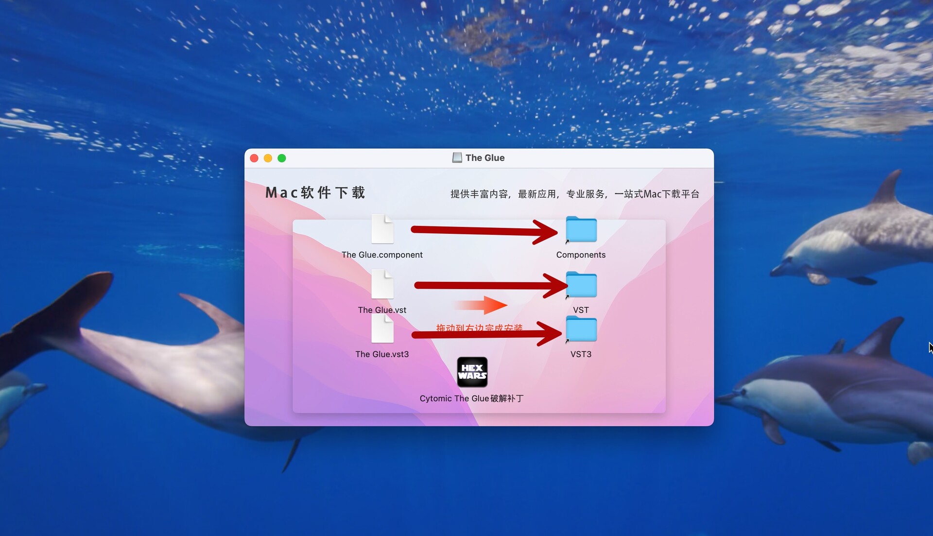 Cytomic The Glue插件下载完成后打开,将左侧文件拖到右侧对应文件夹内