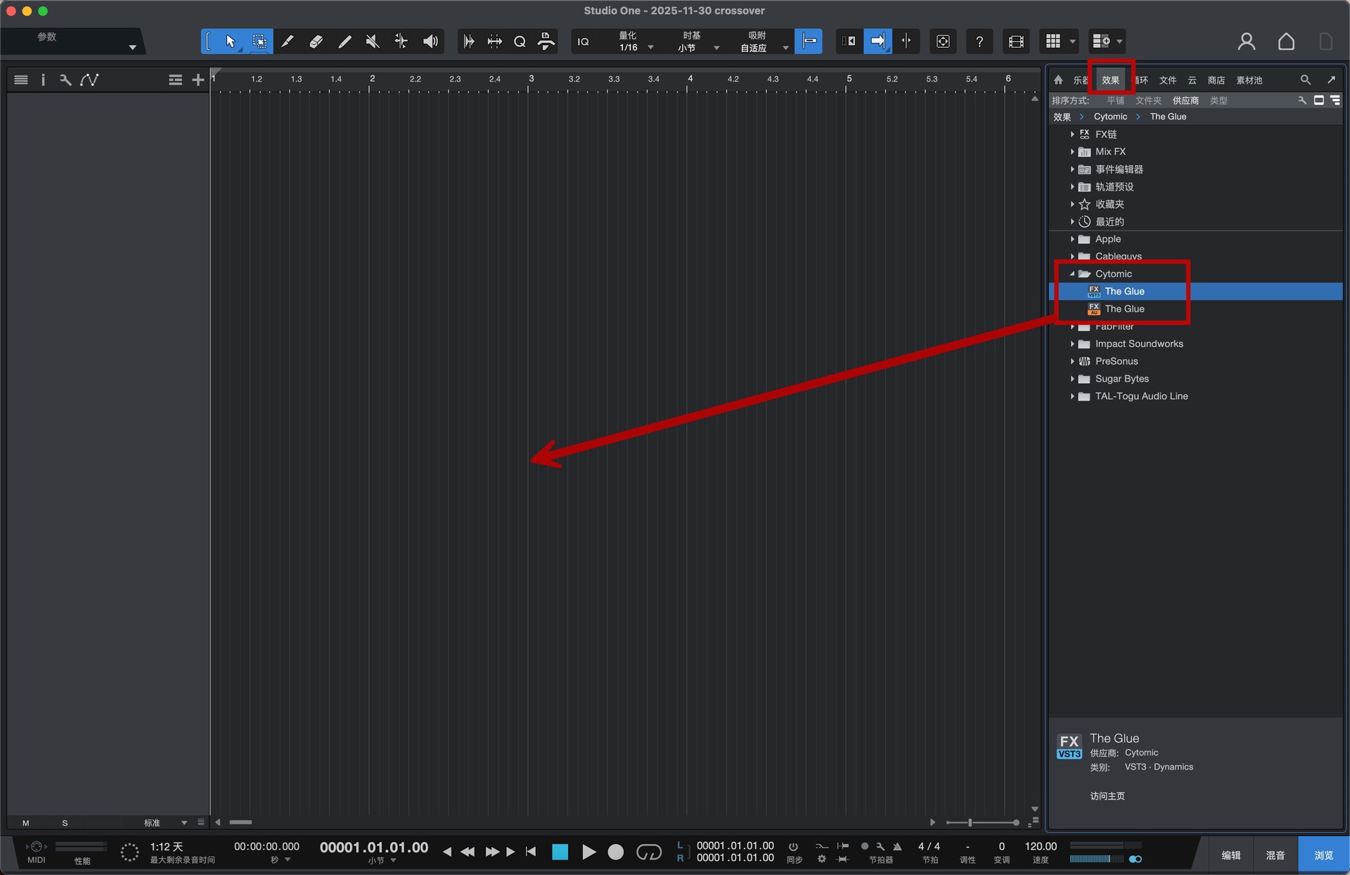 打开Studio One,在效果-供应商中找到安装好的插件,拖动到左侧