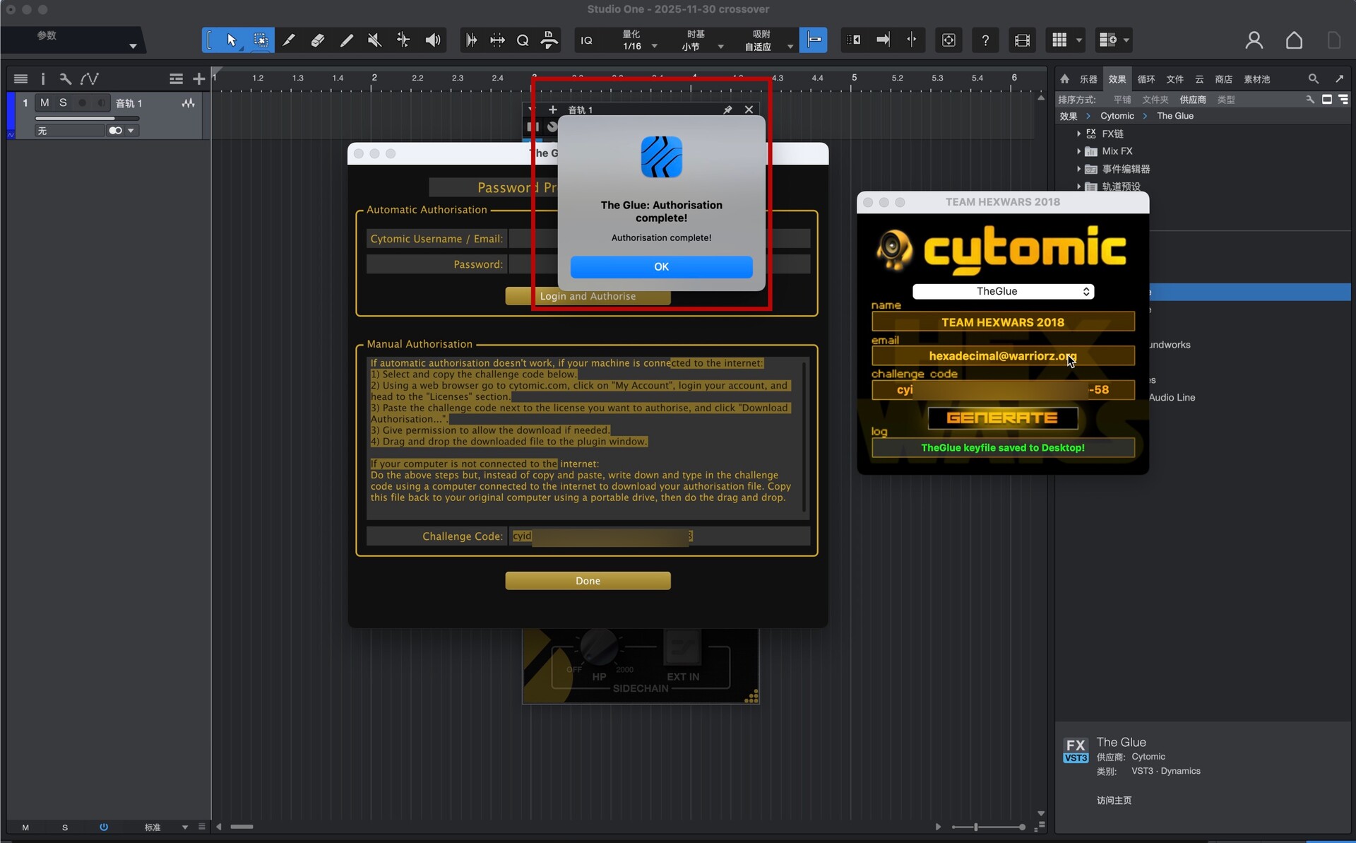 Cytomic The Glue for Mac破解成功,点击OK,请尽情使用!