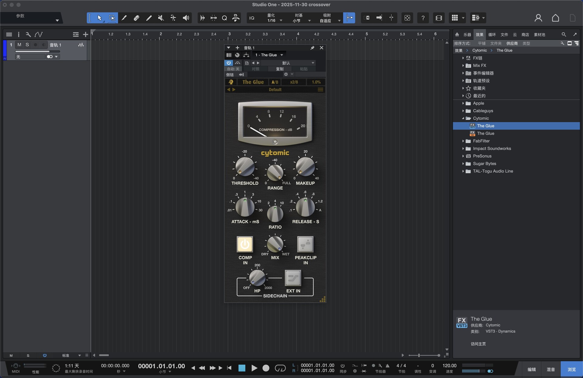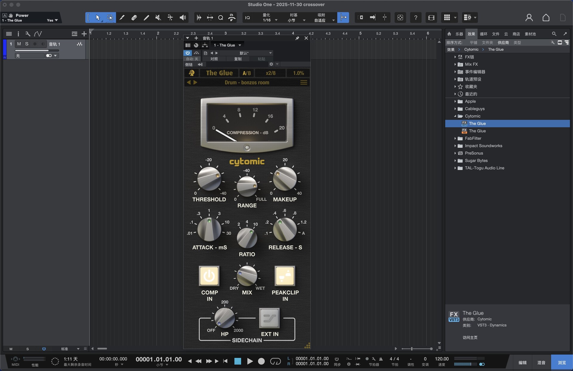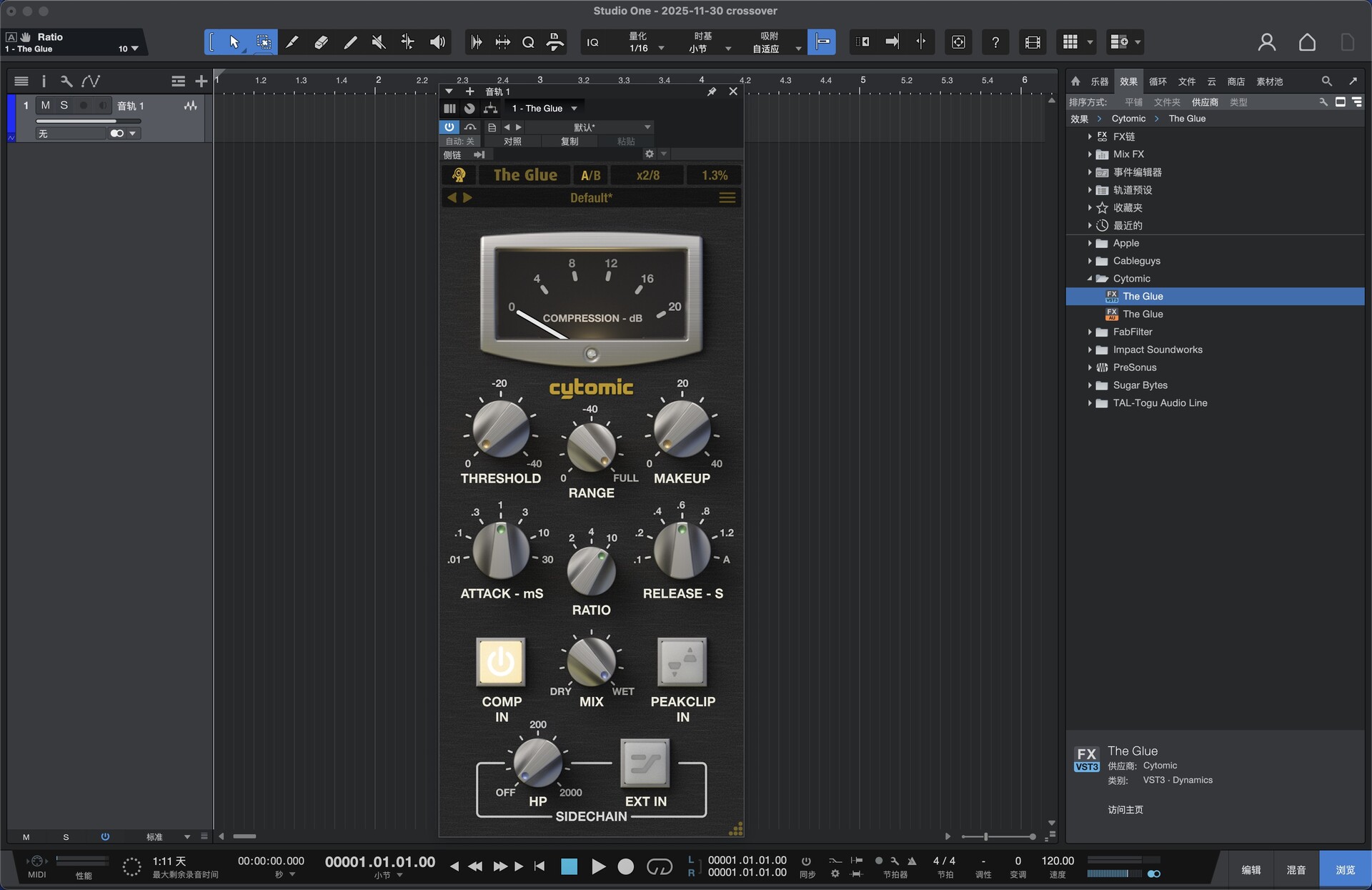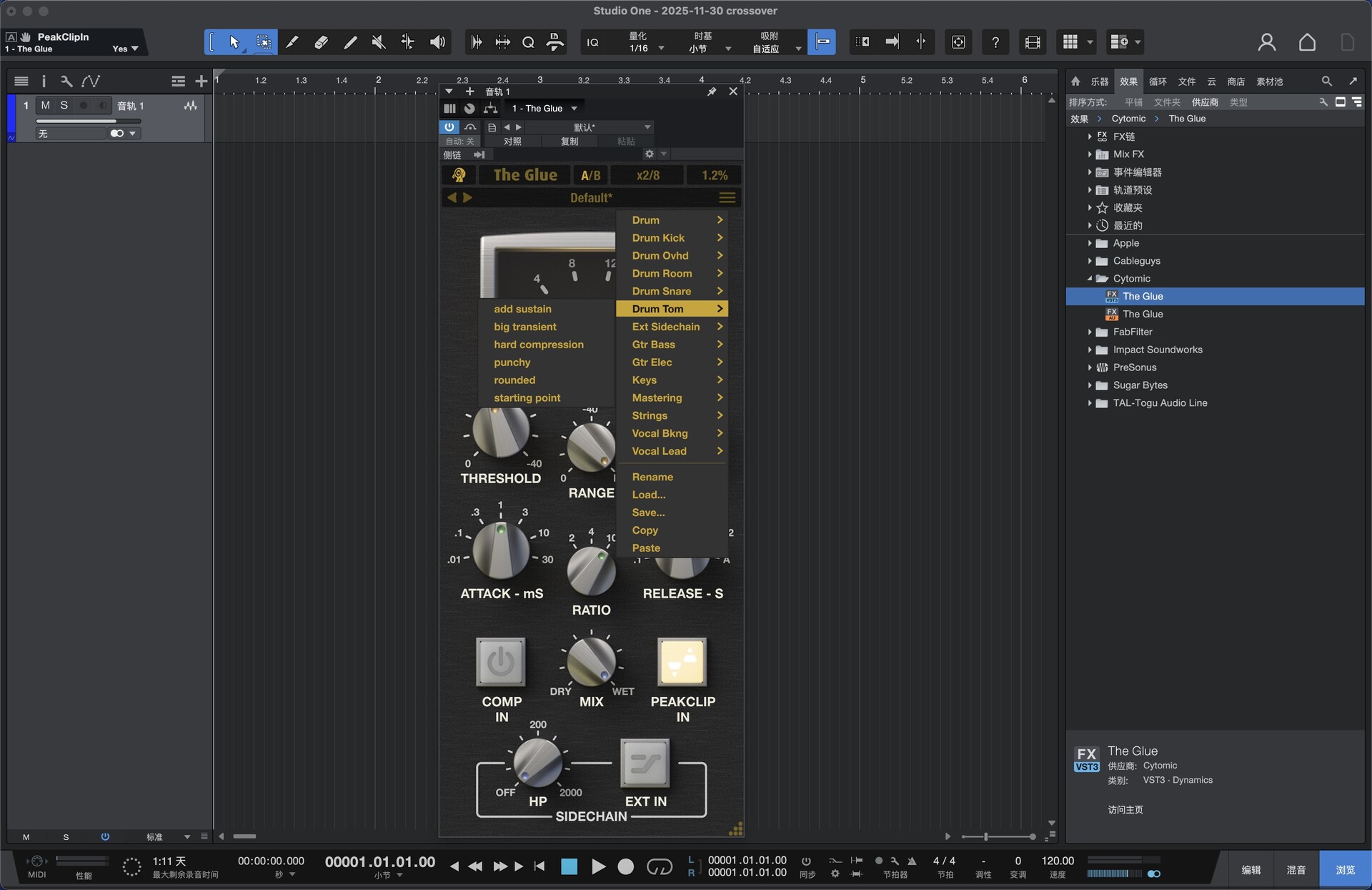 2、Mix和Range控件都添加了许多用于拨打压缩风格的选项,实际上我们发现这使得The Glue成为一种非常灵活的压缩器,不仅适用于主总线,也适用于单个仪器。