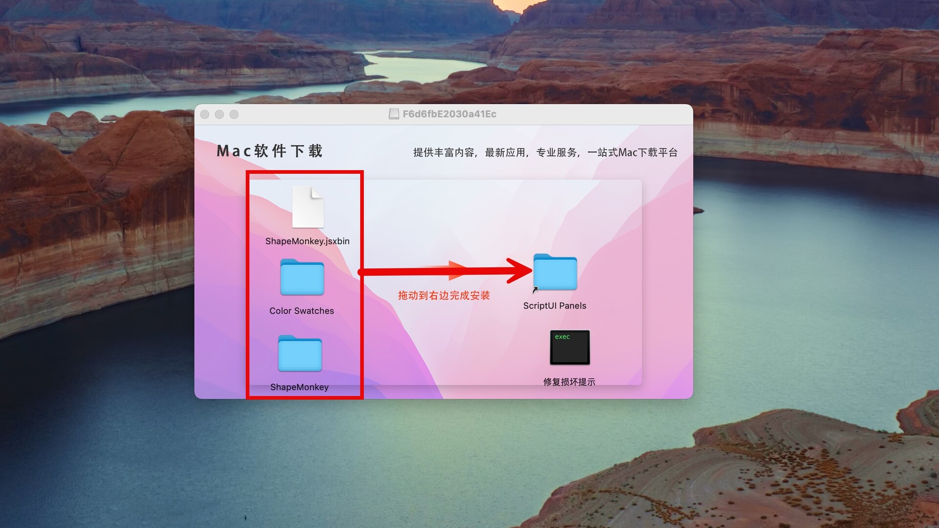 下载好安装包后,将左侧3个文件拖拽至右侧ScriptUI Panels