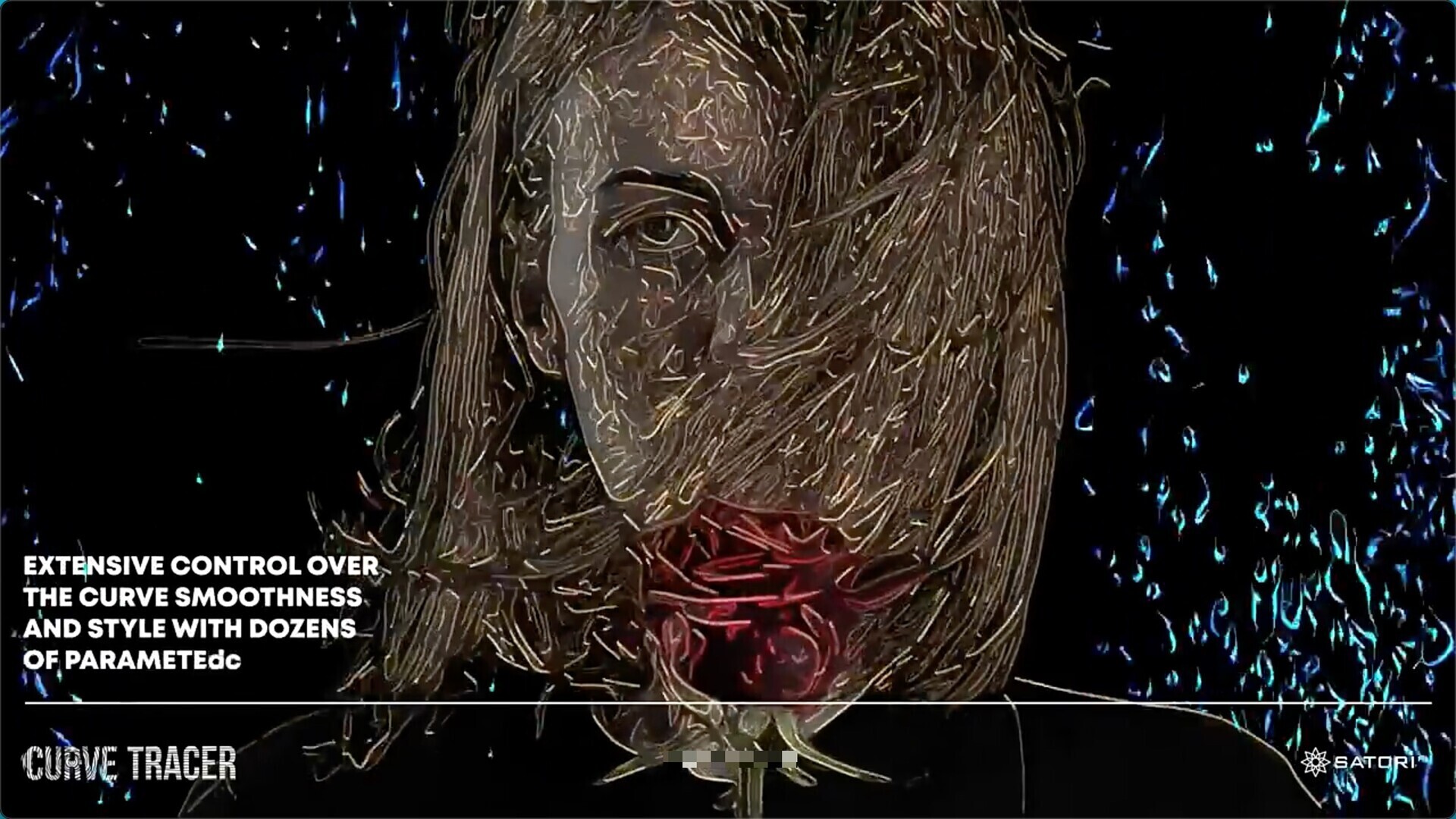 从铅笔画到抽象素描 – 用轮廓追踪您的素材,并为您的创作带来手绘风格的有机感觉。Curve Tracer 插件模拟艺术家用铅笔创作的过程。绘图是另一个全彩色图像或动画的抽象再现。艺术家会先画一些“草图”曲线,作为对最终图纸形状的粗略估计。然后他们将继续使用主要的 – 更详细的 – 曲线,这些曲线也可能被着色以传达一种深度感。过滤器通过分析输入图像的边缘/轮廓并将它们转换为样条(曲线)的集合来工作。然后这些曲线在向量空间中被平滑或抽取,最后呈现为连续的线段。后处理步骤添加了颜色和轻微的“绽放”效果,以提高真实感。