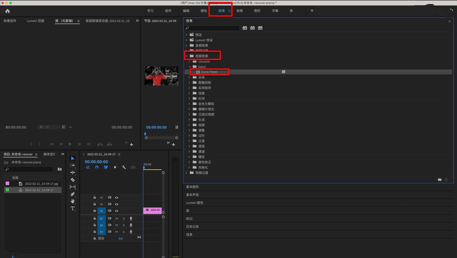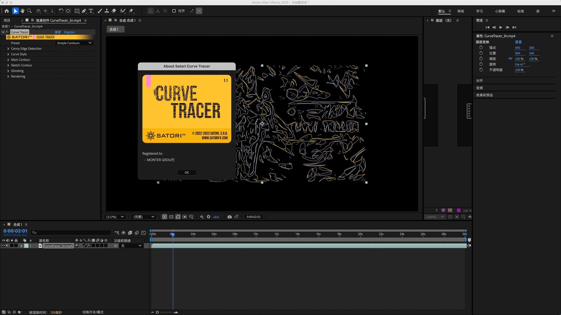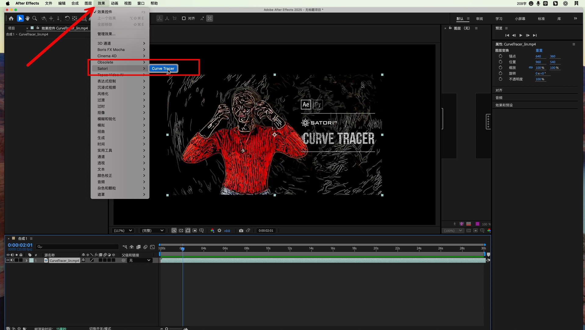 在AE软件顶部效果菜单下即可看到CurveTracer插件