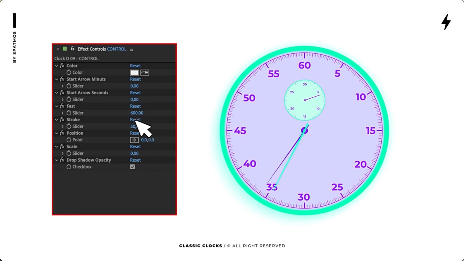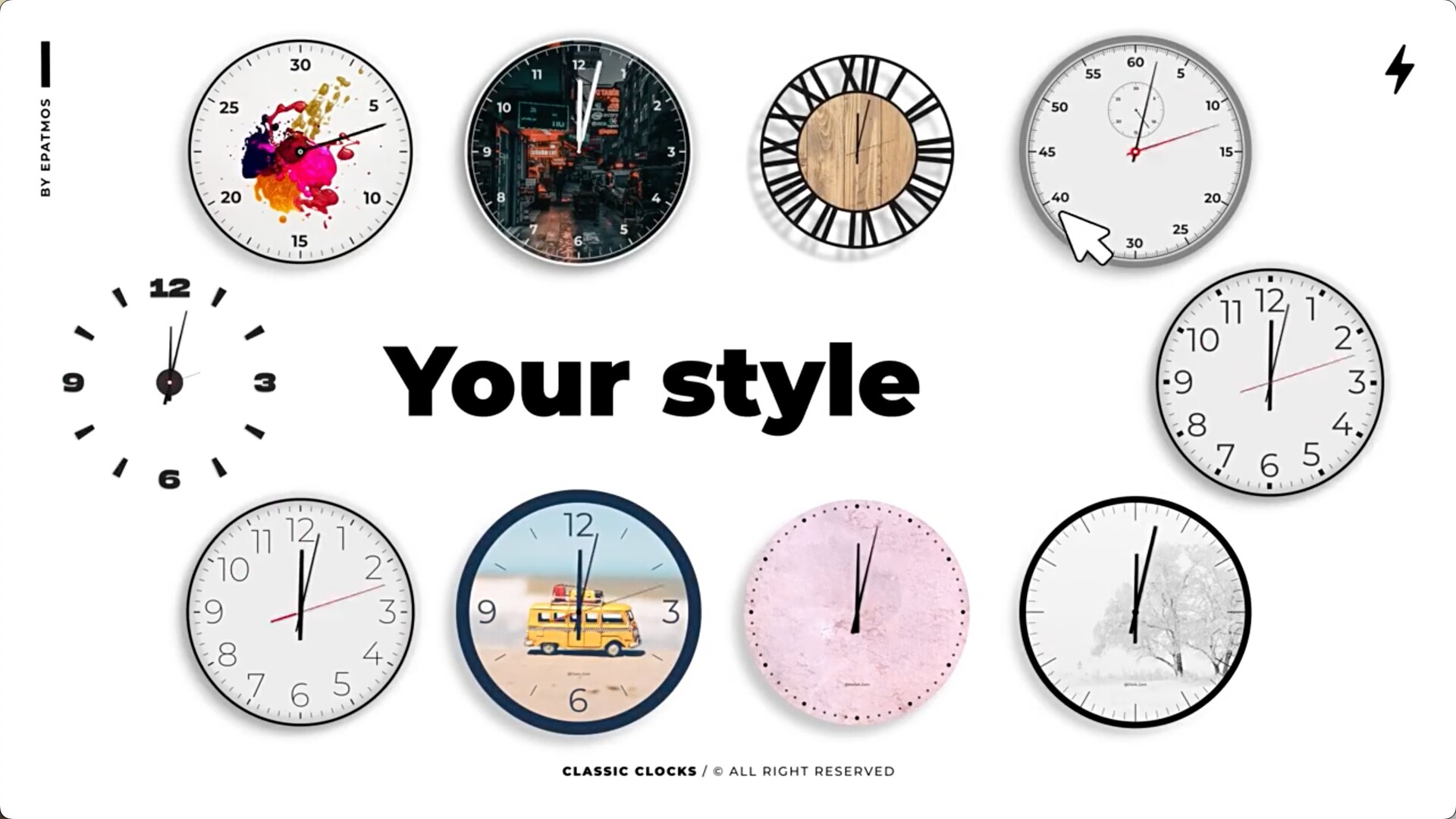 AE模板-经典数字时钟动画 Classic Clocks全色彩控制10个场景,可调整时间的速度、尺寸、风格。可在时间显示上编辑照片等。