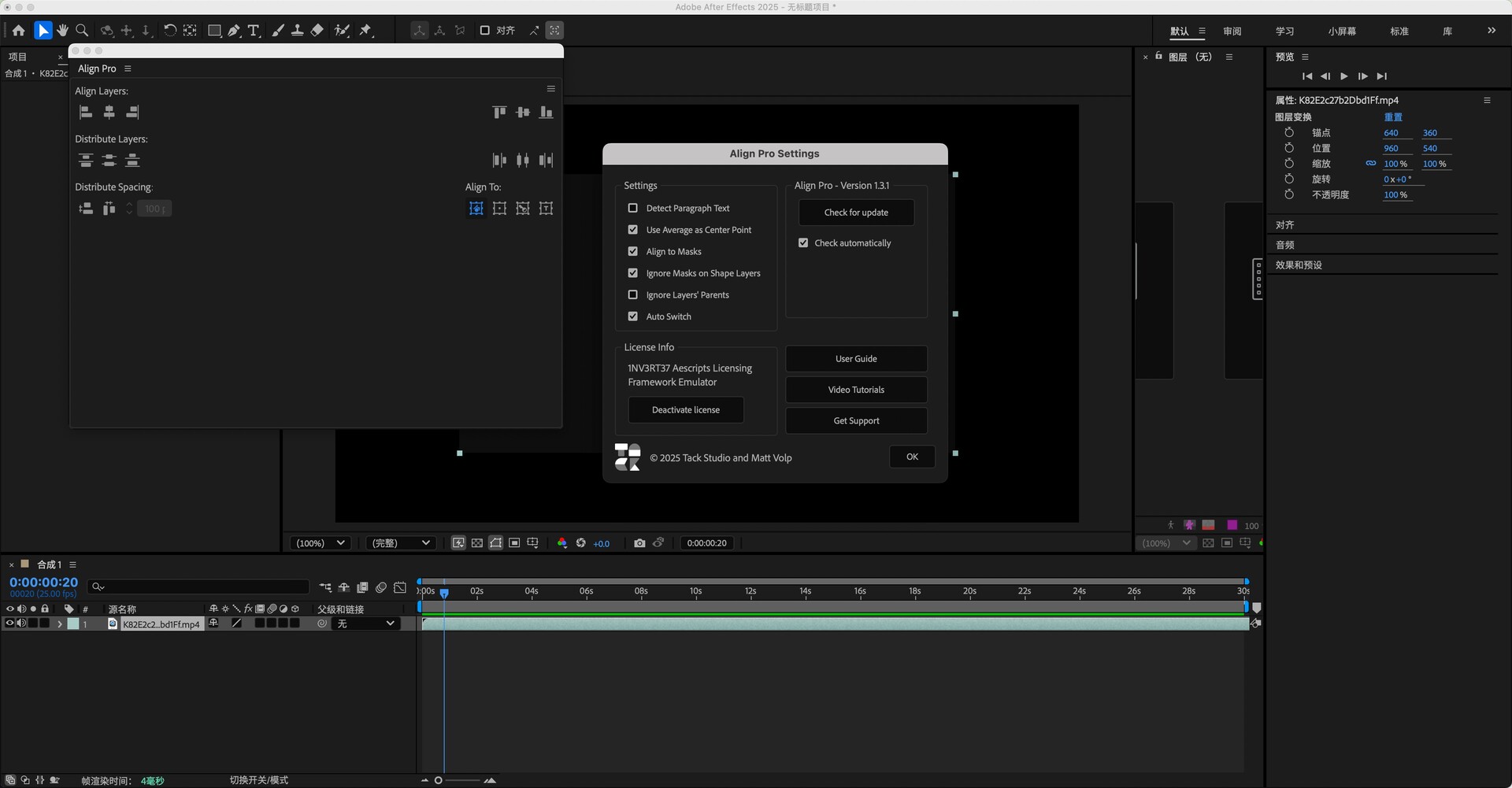 Align Pro 是一款功能强大的 AE 脚本,为用户提供了全新的图层对齐体验,使得在 After Effects 中进行图层布局变得更加直观、高效。无论是设计专业人士还是动画制作初学者,Align Pro 都将成为提升工作效率的得力助手。