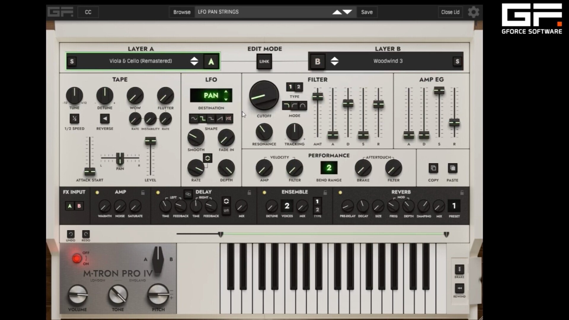 GForce M-Tron Pro IV for mac插件拥有重新设计的界面以及广泛的 3.5GB 音色库,提供 200 多个磁带库和 800 多个预设,承诺提供丰富的声音选项,并为用户提供轻松高效的操作和定制选项。