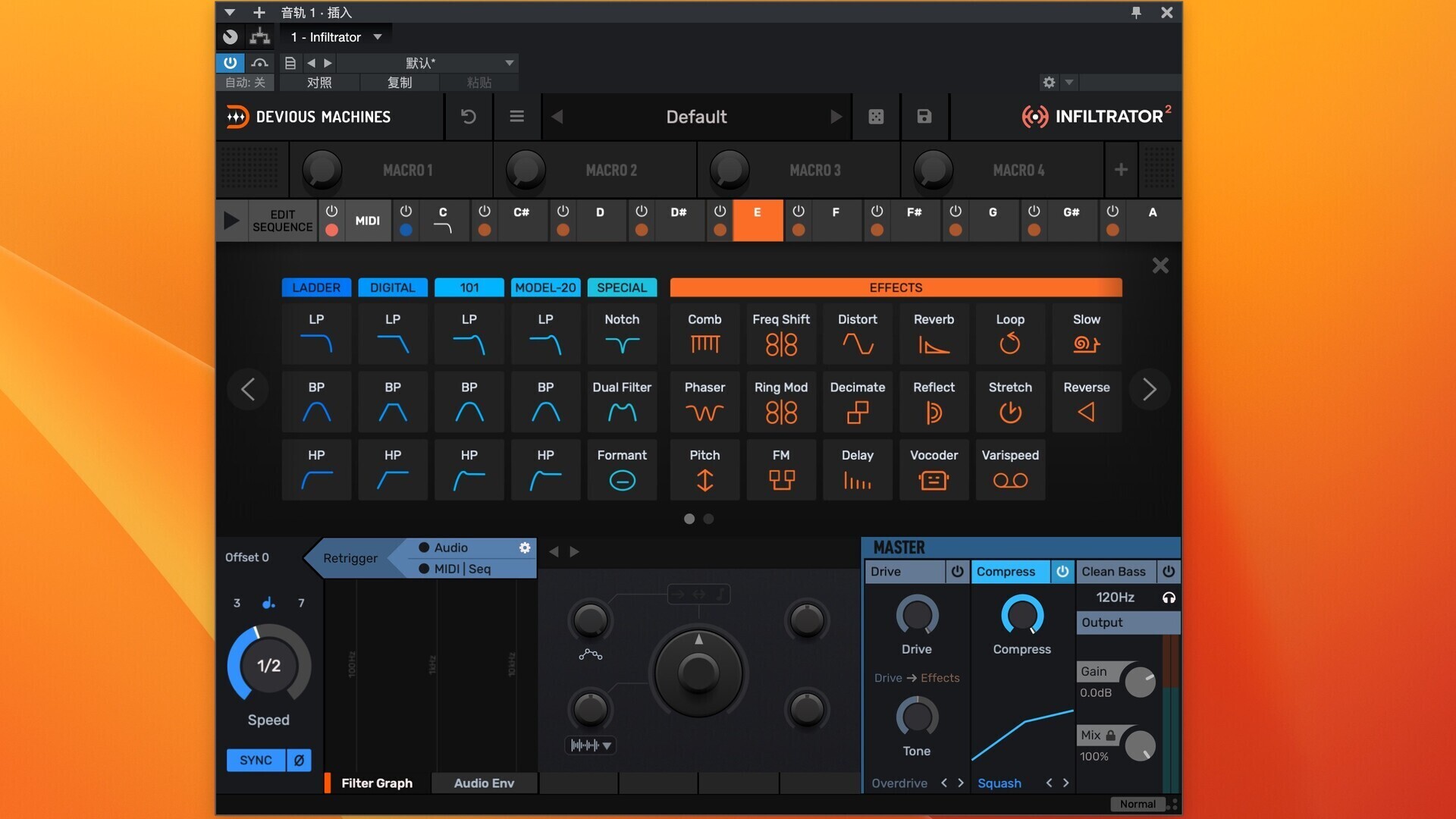 Devious Machines Infiltrator for Mac是一款多重效果调制音序器插件,Infiltrator可以同时堆叠、排序和调制多达十种不同的效果。同时仍然保留了原来的直观工作流程。
