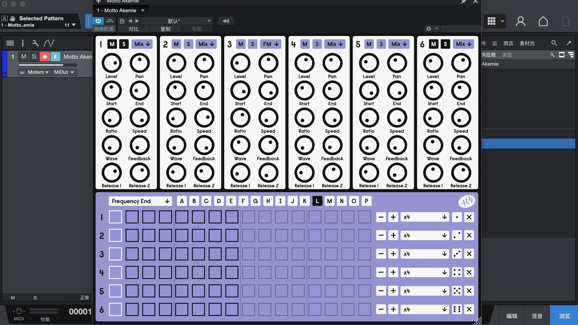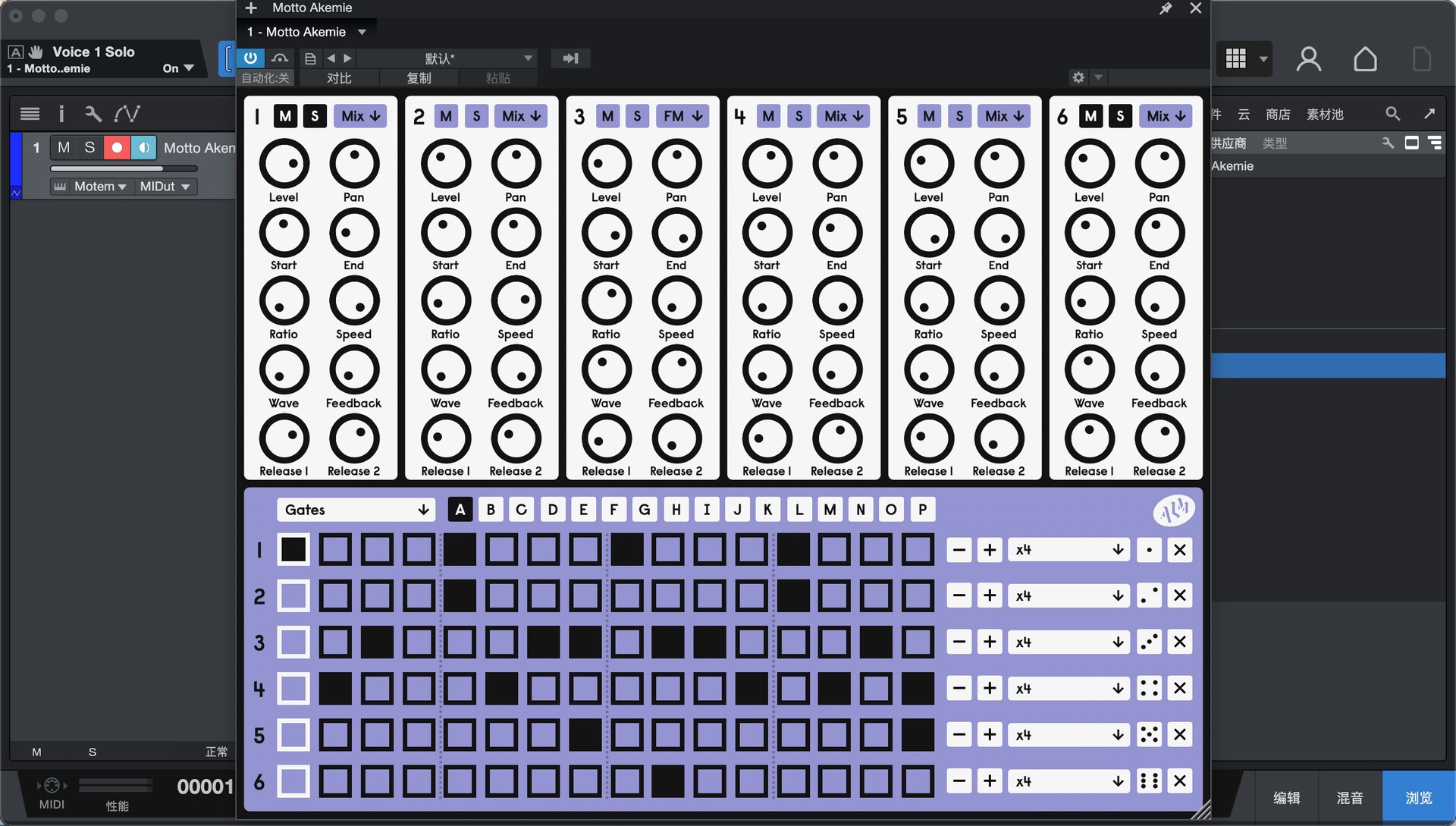 Motto Akemie提供了16个模式库,用户可以快速复制、保存和加载自己的序列。该插件还提供了全面的参数自动化支持,以及每个声部的MIDI控制和MTS-ESP微调支持。