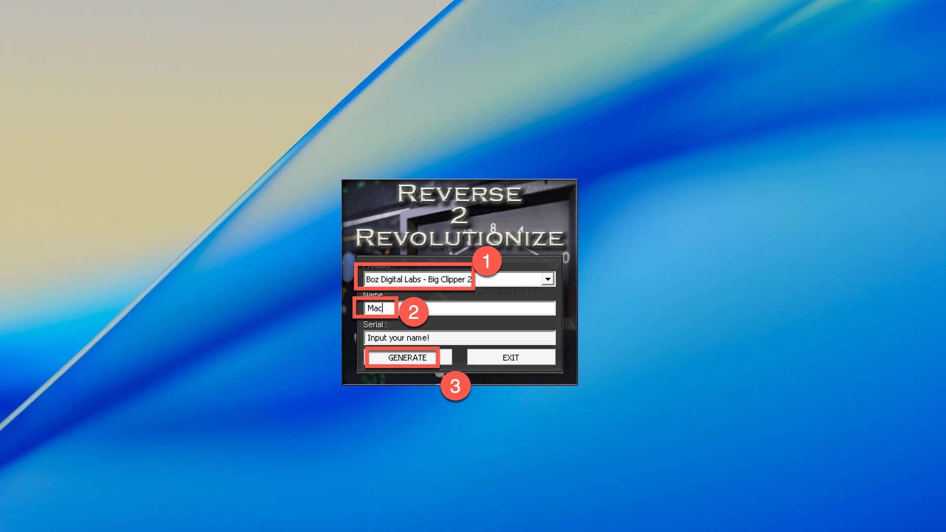 在注册机中选择要激活的插件名字,然后输入名字,点击generate生成注册码(该系列插件必须使用同一个名称,否则会导致其他插件激活失败)