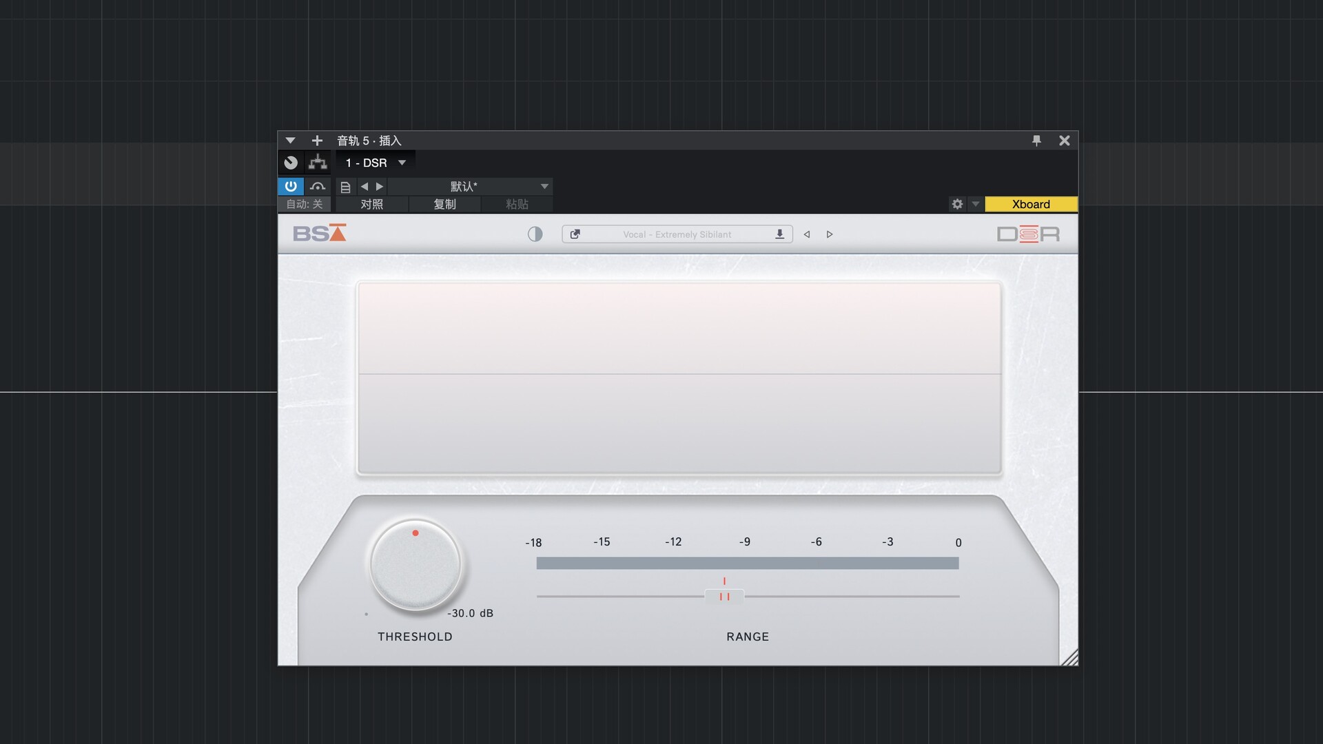 范围设置了增益降低的程度的限制。例如 ,在 -6dB 的范围内,嘶嘶声消除器将减少最多 -6dB ,但不会进一步减少,因此您可以拨入完美的“Sss”量