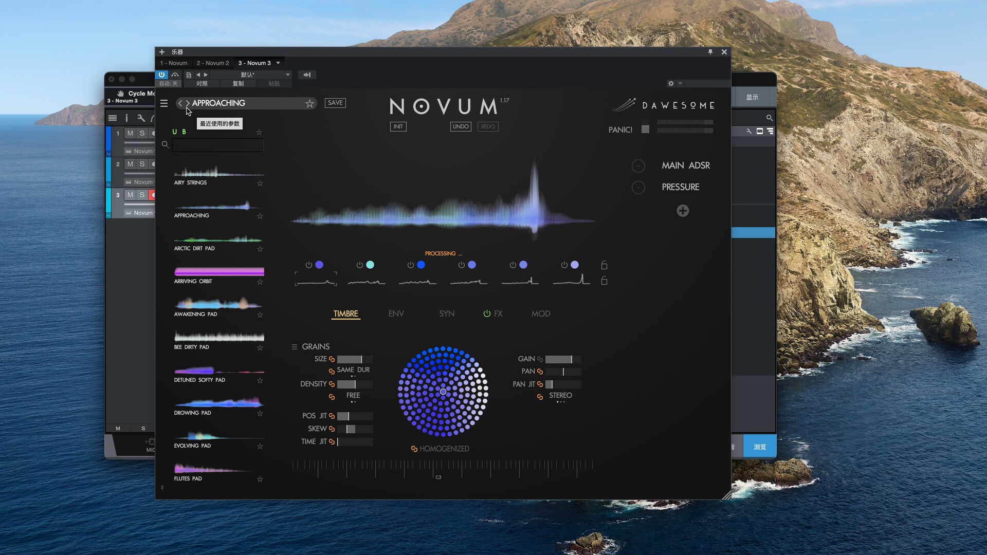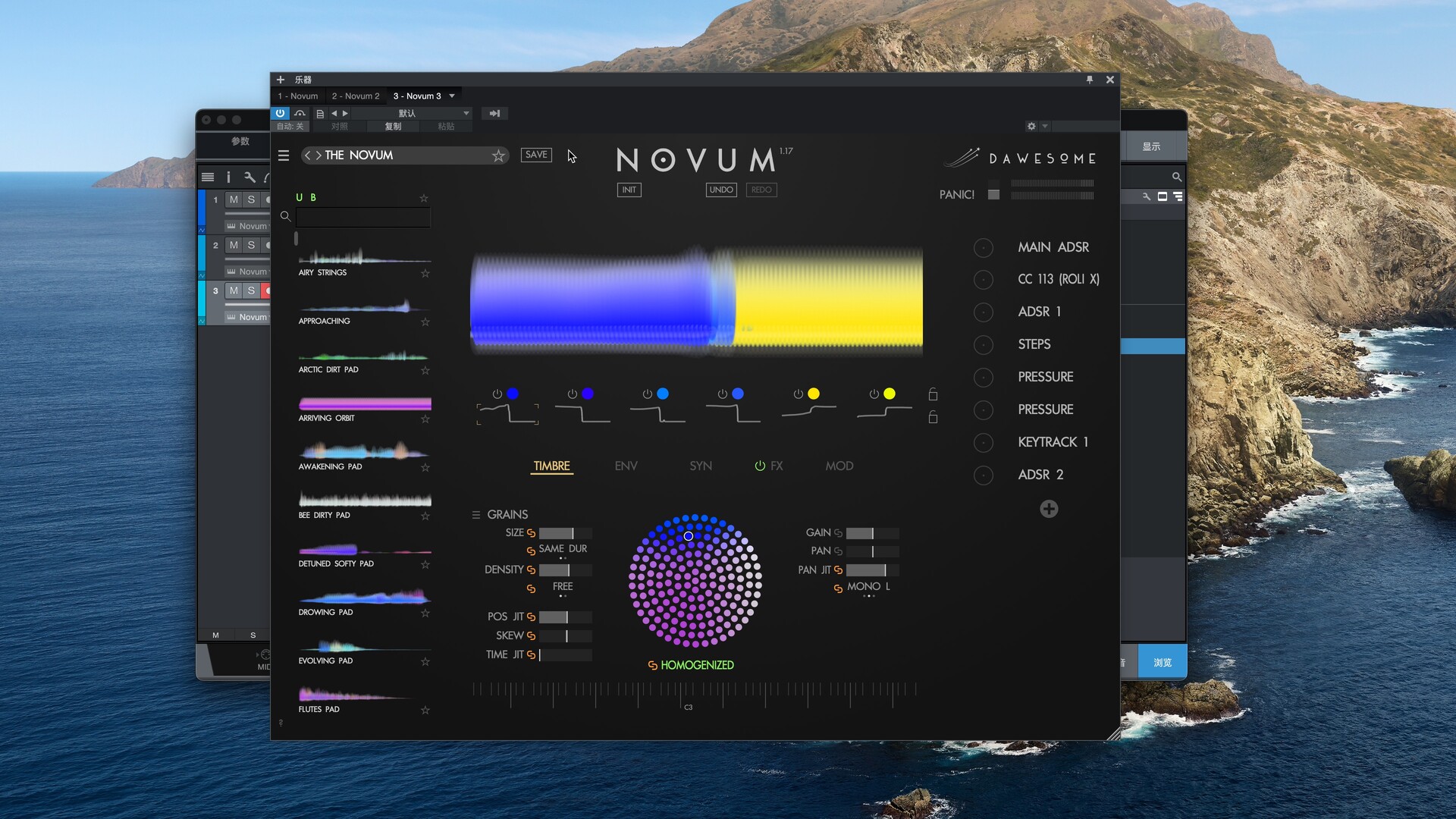 “每一种声音都可以成为一种乐器”——这是 Novum 的核心设计理念。使用 Comb-Filter 将现场录音变成可播放的调谐乐器,同时保持原始纹理。只需对粒度播放进行一些调整,即可将失调的小提琴样本转换为飙升的弦乐合奏。使用音色花将合唱团变成闪闪发光的玻璃垫?或者使用 SYNTIFY 将您的样本转变为黑暗合成器无人机,就像直接来自奇怪的模块化怪物的东西。您将使用 Novum 创建什么?
