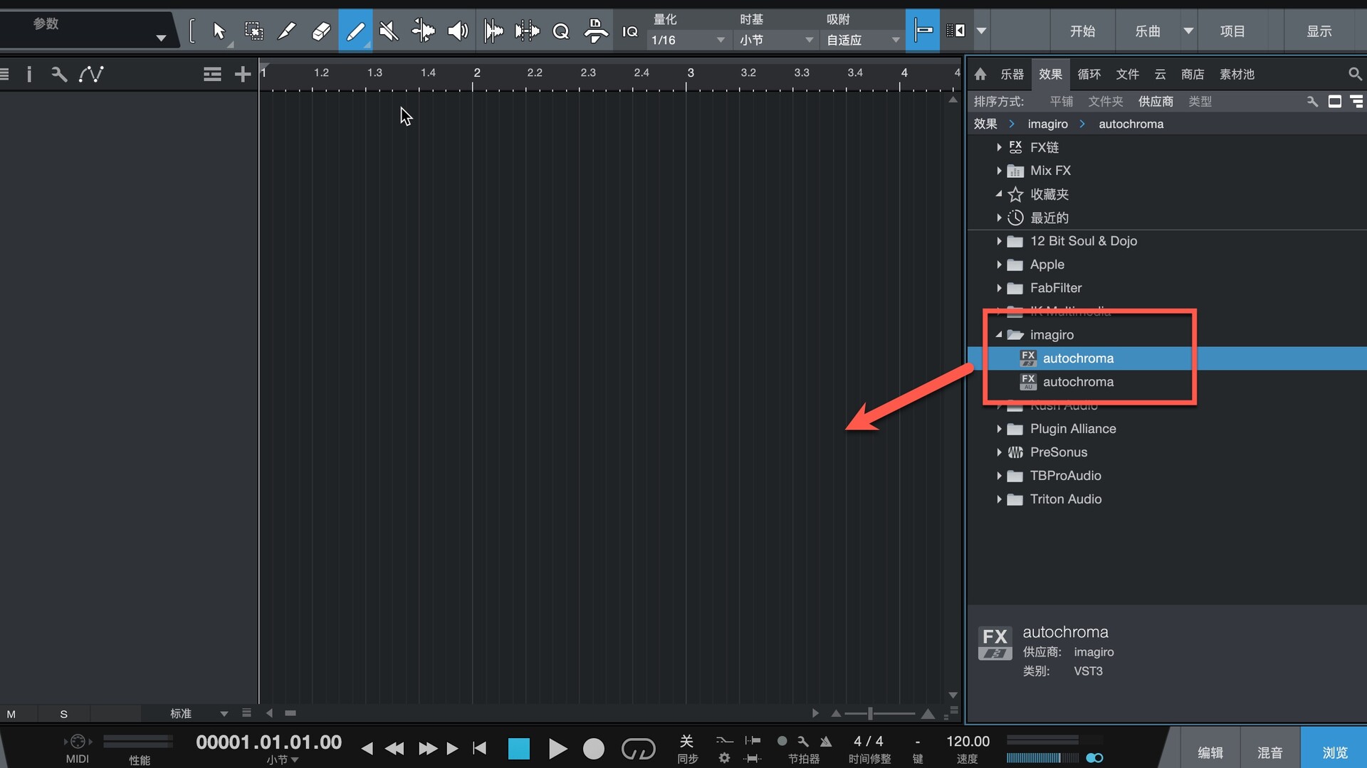 打开Studio One,在效果-供应商找到安装好的插件,拖动到空白处运行