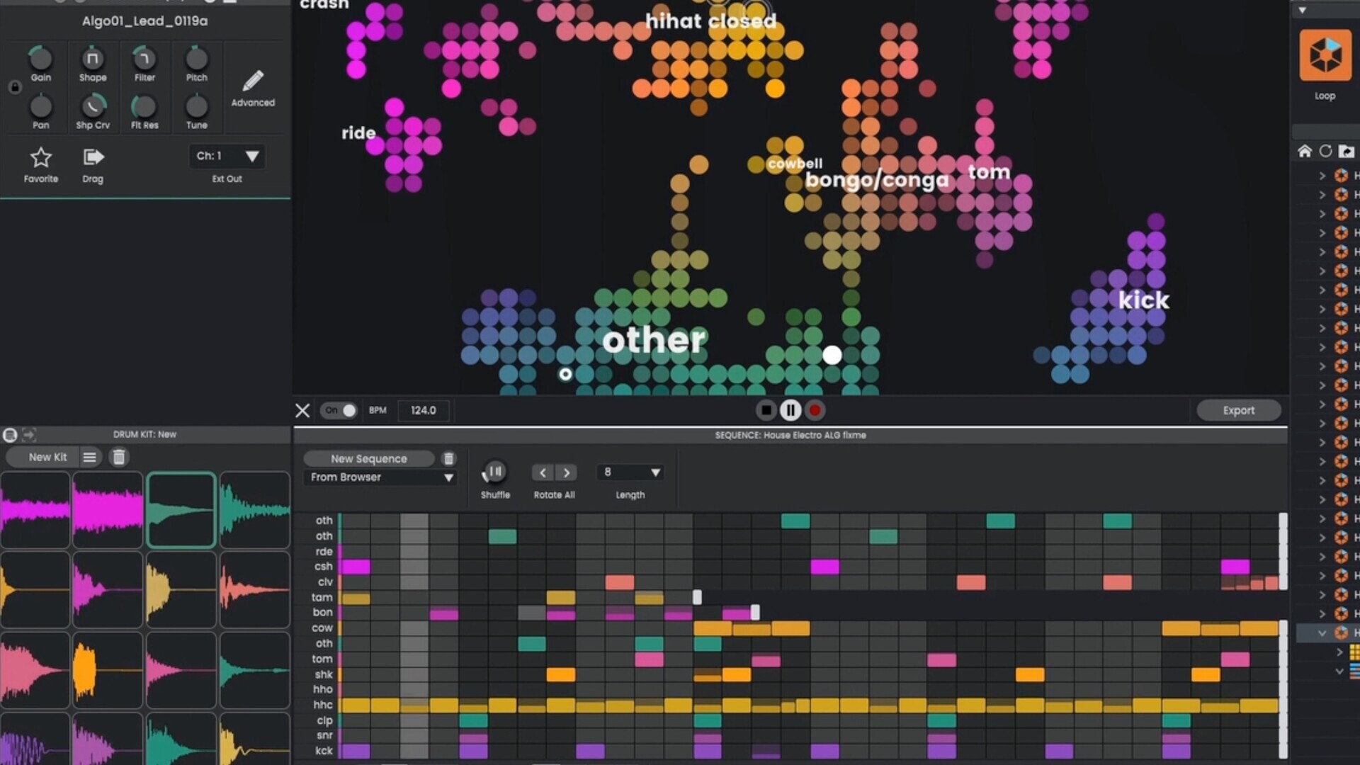 尤其是鼓音序器,从一开始就设计得快速而灵活。我们的想法是采用传统步进音序器(如备受喜爱的 FL-Studio 音序器)的工作流程速度,但在需要时赋予它钢琴卷编辑器的额外灵活性。趁着新鲜,赶紧把这个想法记下来。然后调整所有让节拍真正活跃起来的小细节。