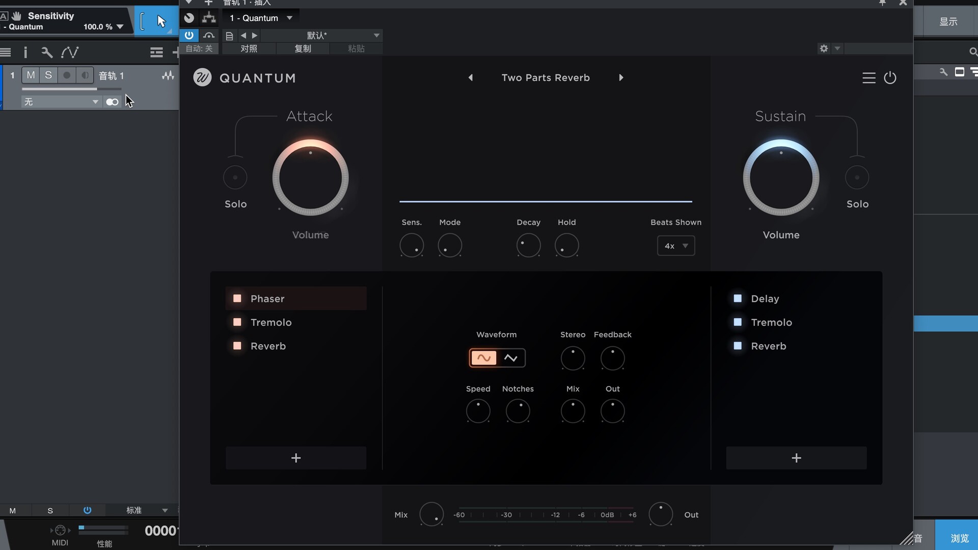 Quantum 自动检测和分类信号的瞬变,将声音分为两条路径:起音和延音。您现在拥有的控制水平是无与伦比的,让您可以在将它们重新组合在一起之前分别为每条路径添加效果。