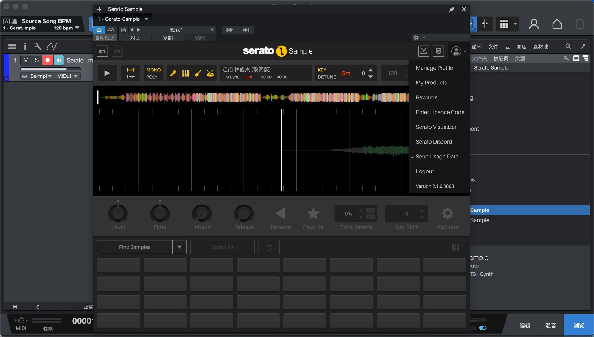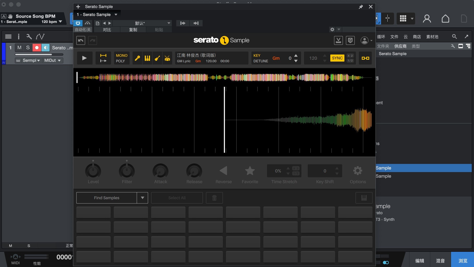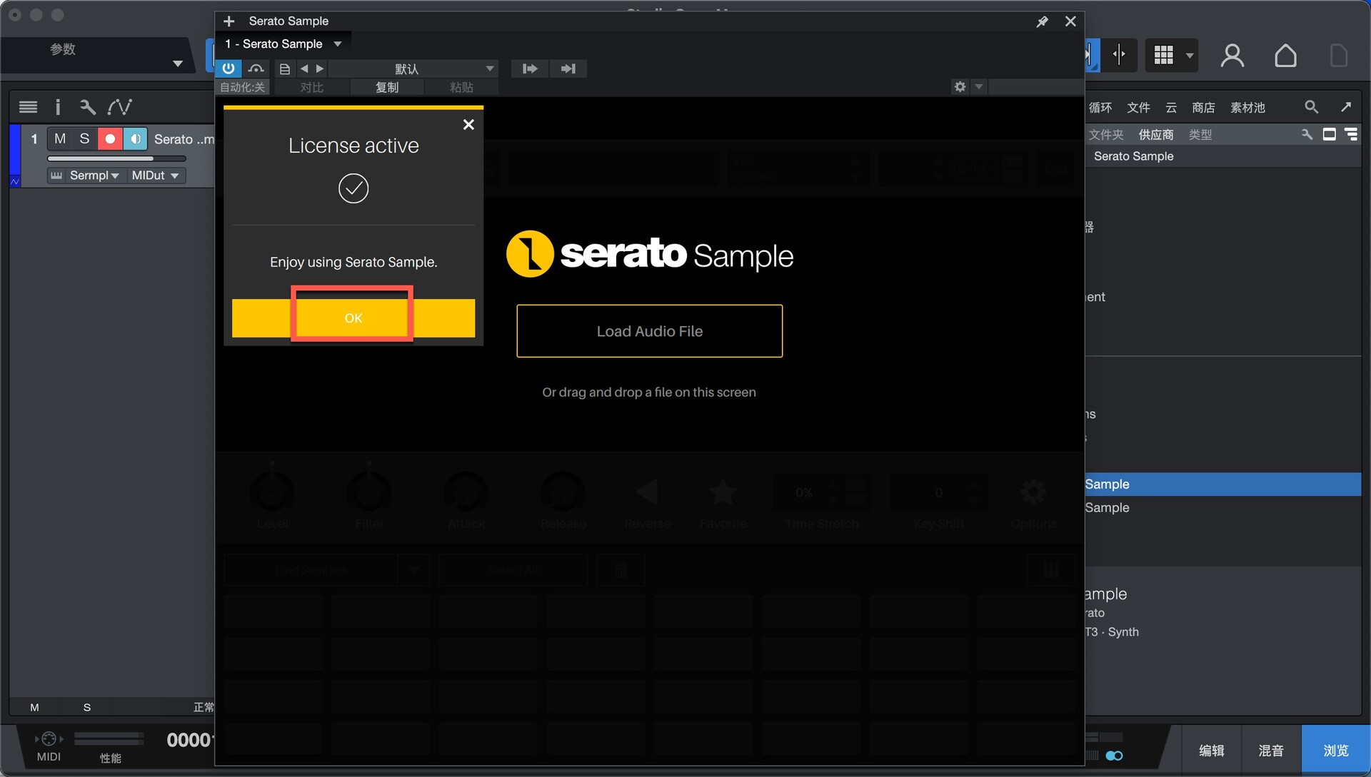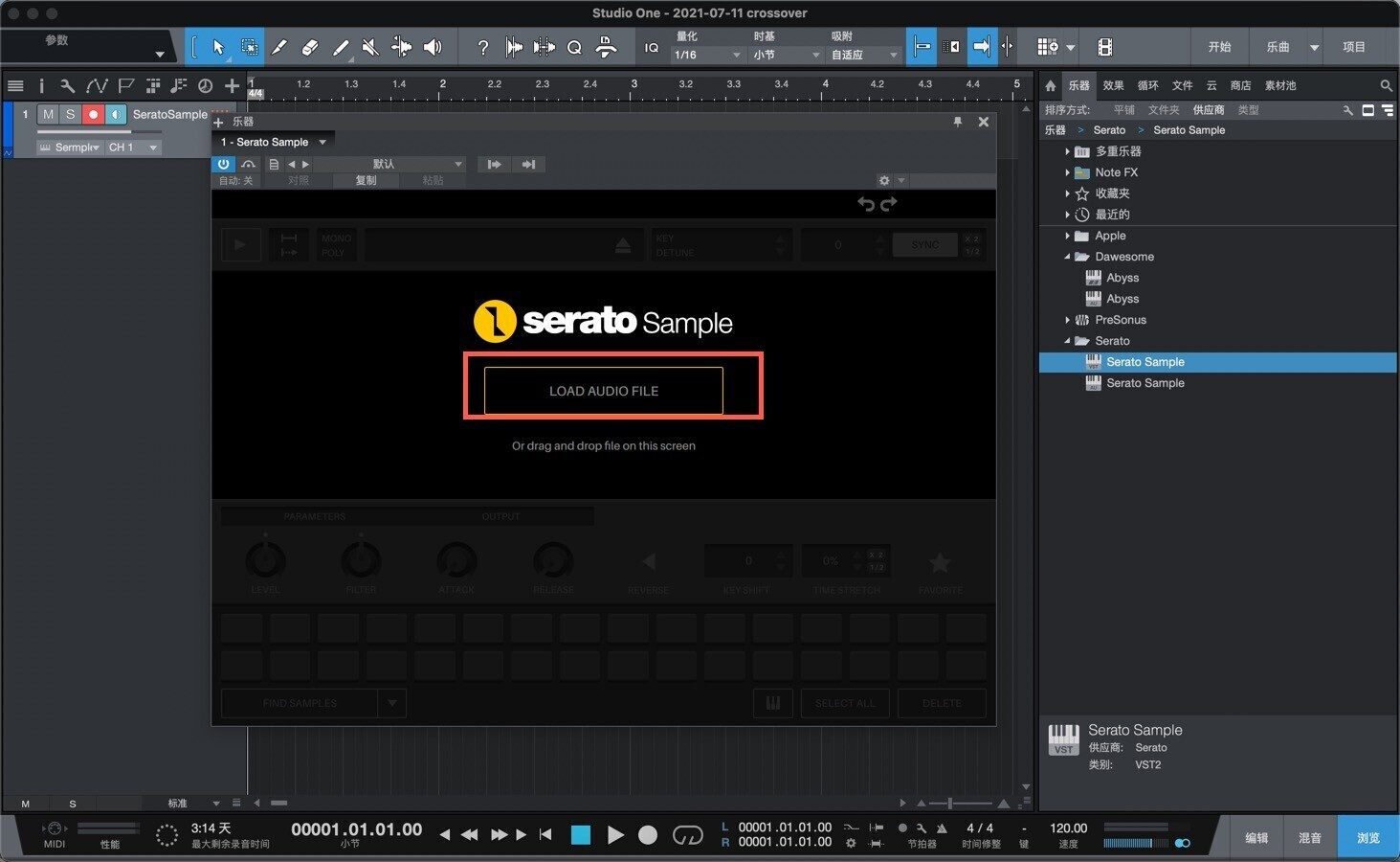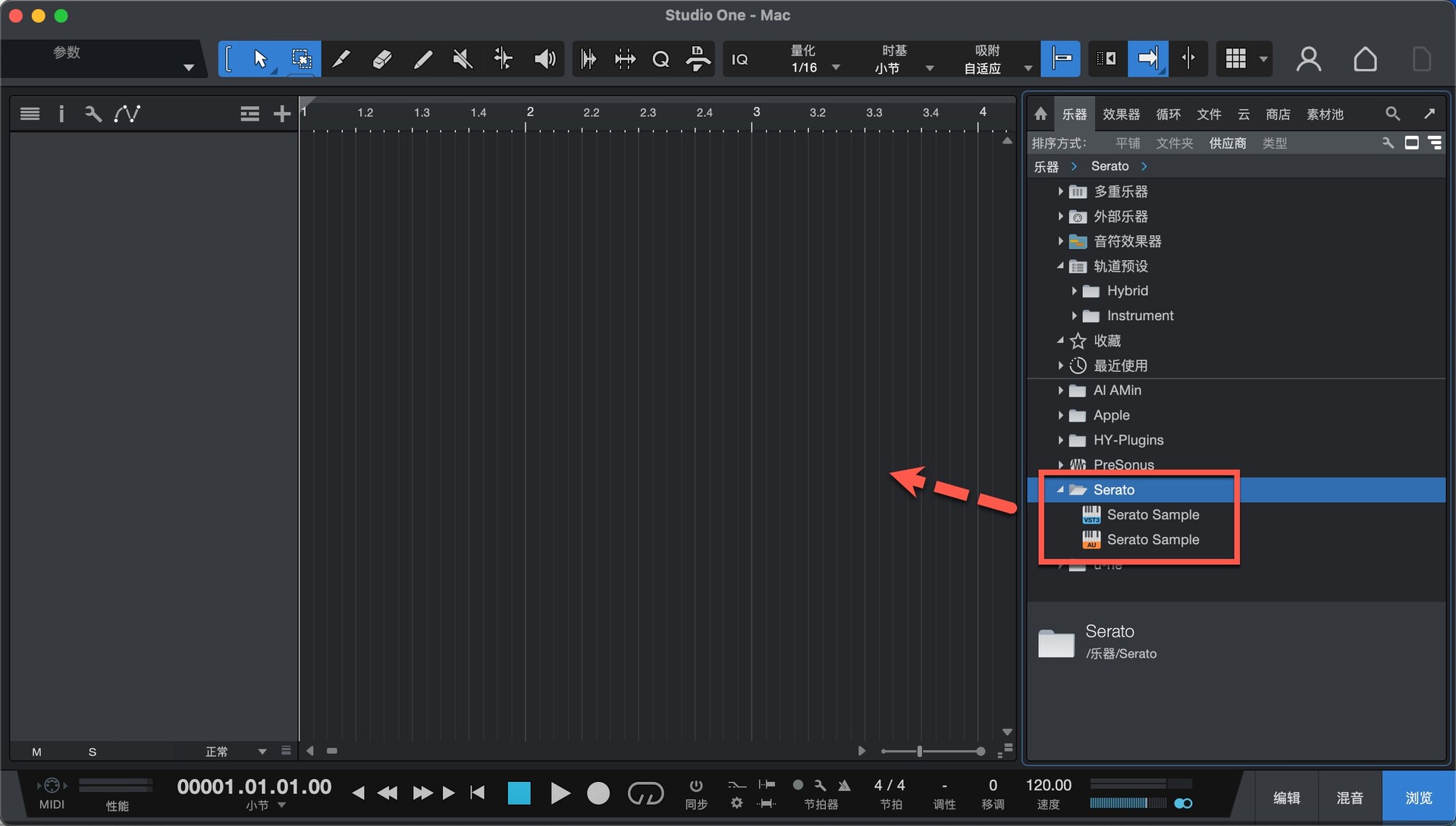 打开studio one,在乐器-供应商-serato下可以找到此插件,拖动到空白处!