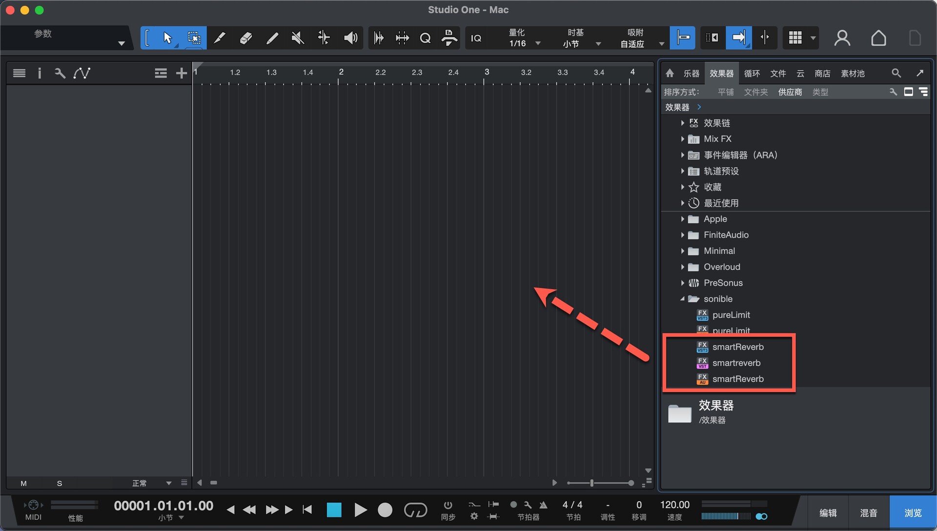 打开studio one插件,在效果-供应商中即可找到安装好的插件拖动到左侧即可