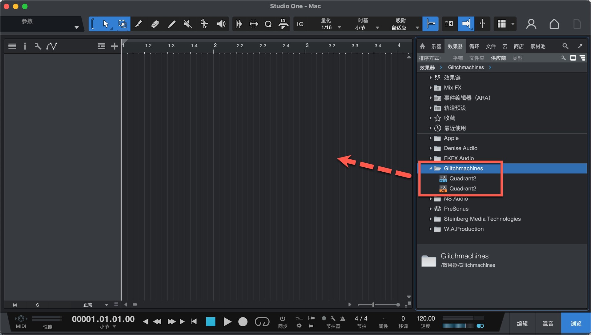 打开Studio One,在效果器-供应商找到安装好的插件,拖动到空白处即可