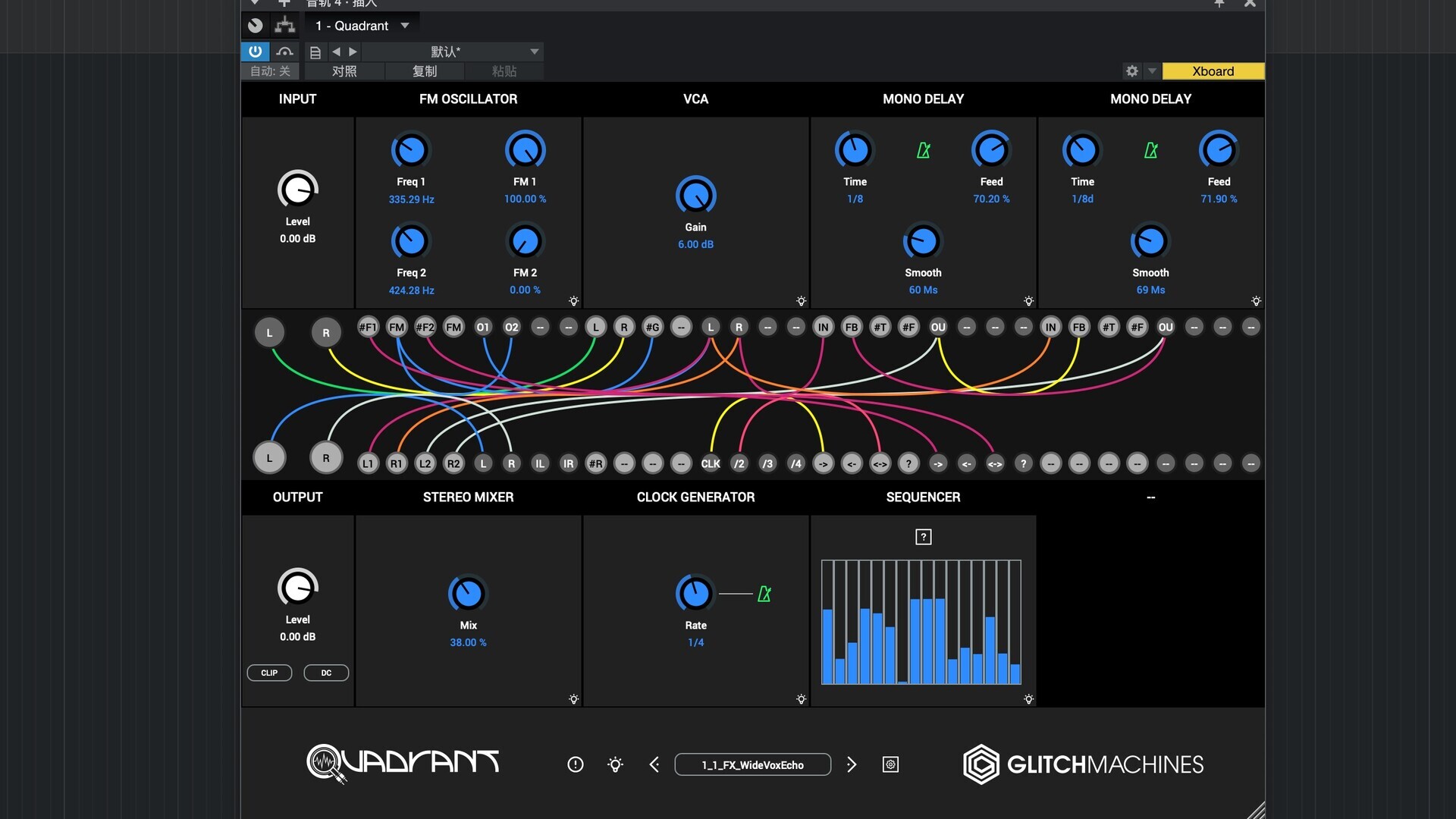 除了声音发生器,Quadrant还包括8个效果模块,包括滤波器、失真器、调制器、延迟、混响等。这些效果可以通过Quadrant的“插槽”系统进行混合和匹配,以创建各种复杂的声音和音效。
