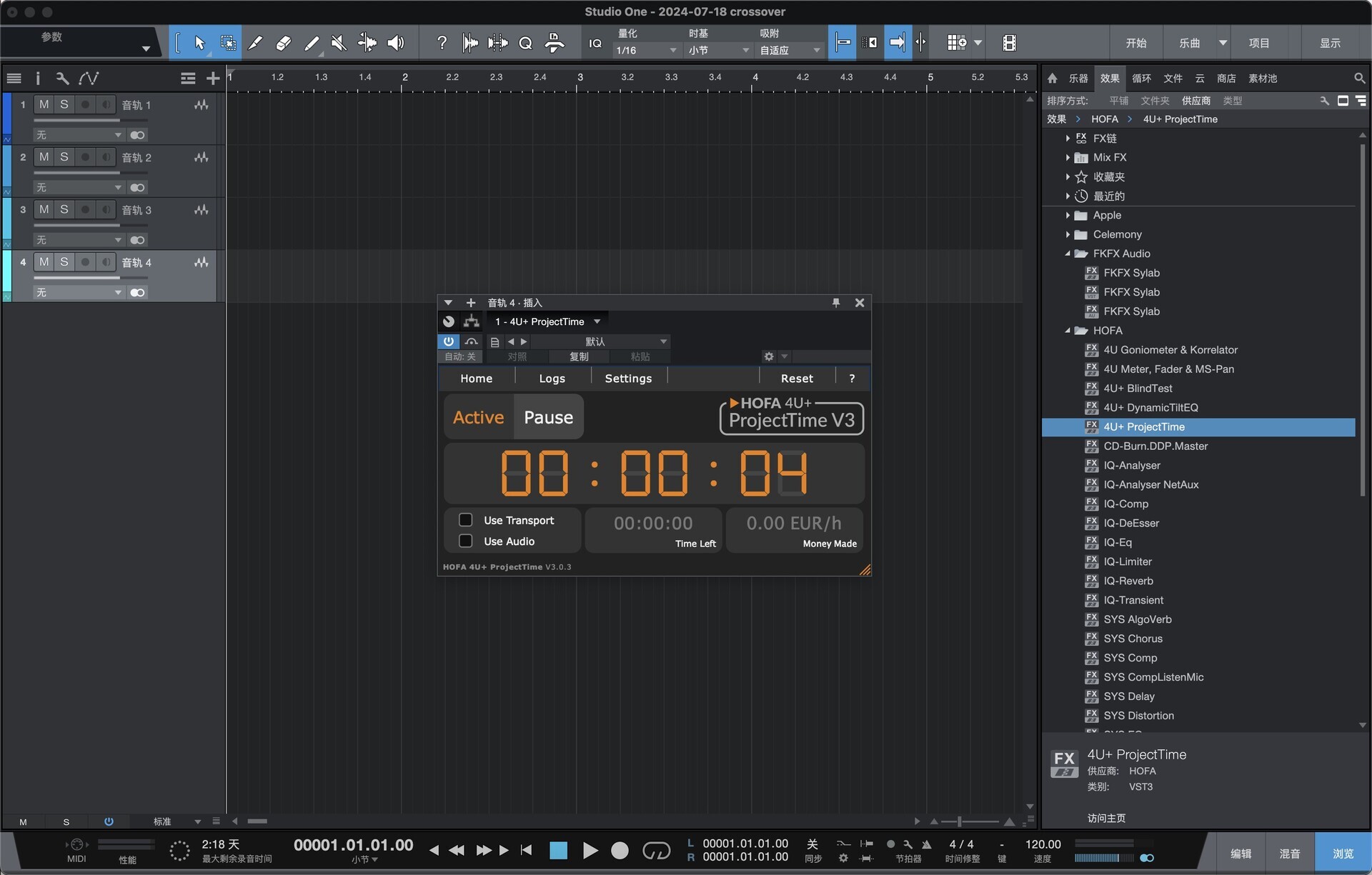 所有 4U+ 插件: HOFA 4U+ BlindTest、HOFA 4U+ DynamicTiltEq、HOFA 4U+ ProjectTime V3