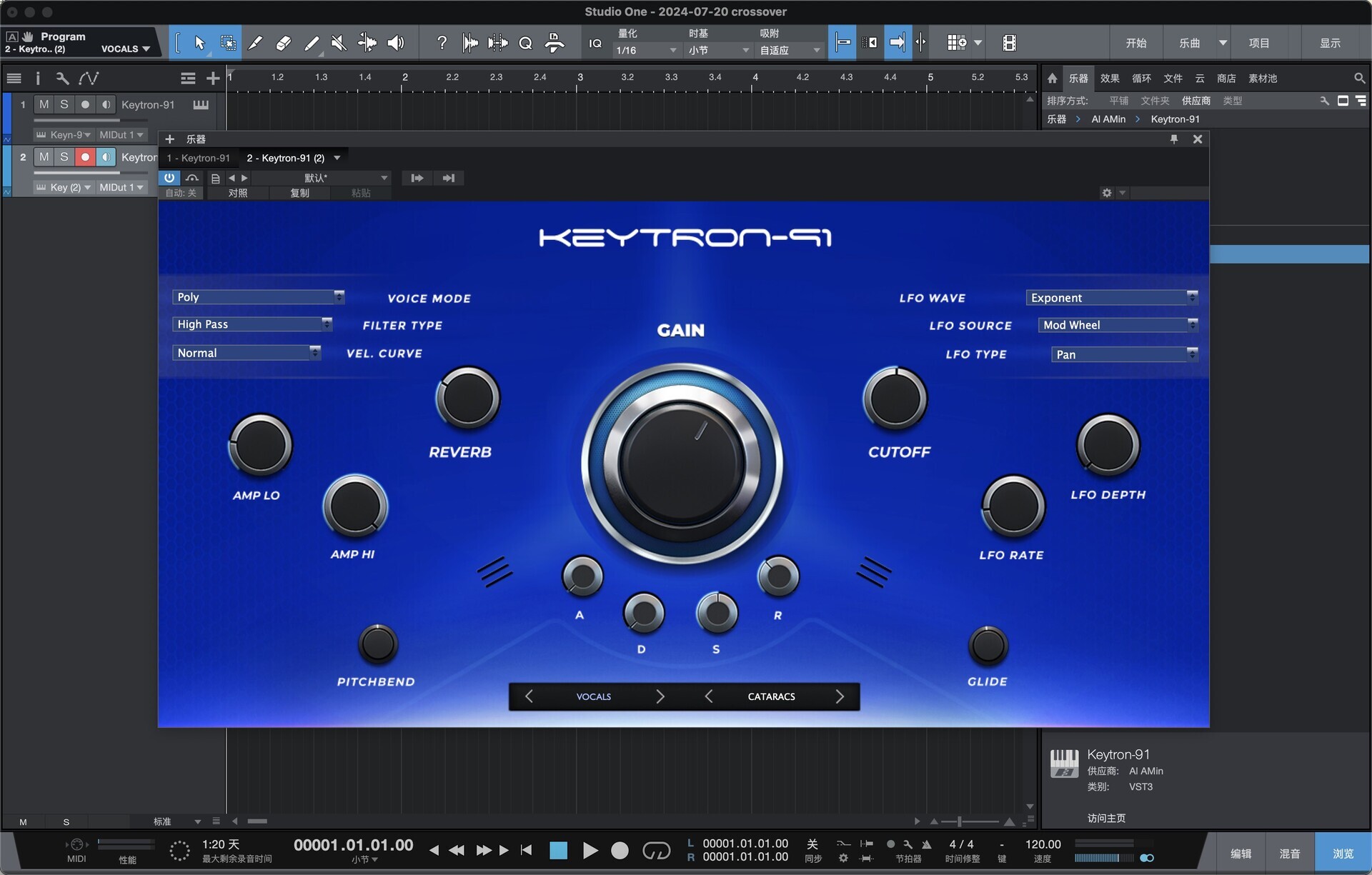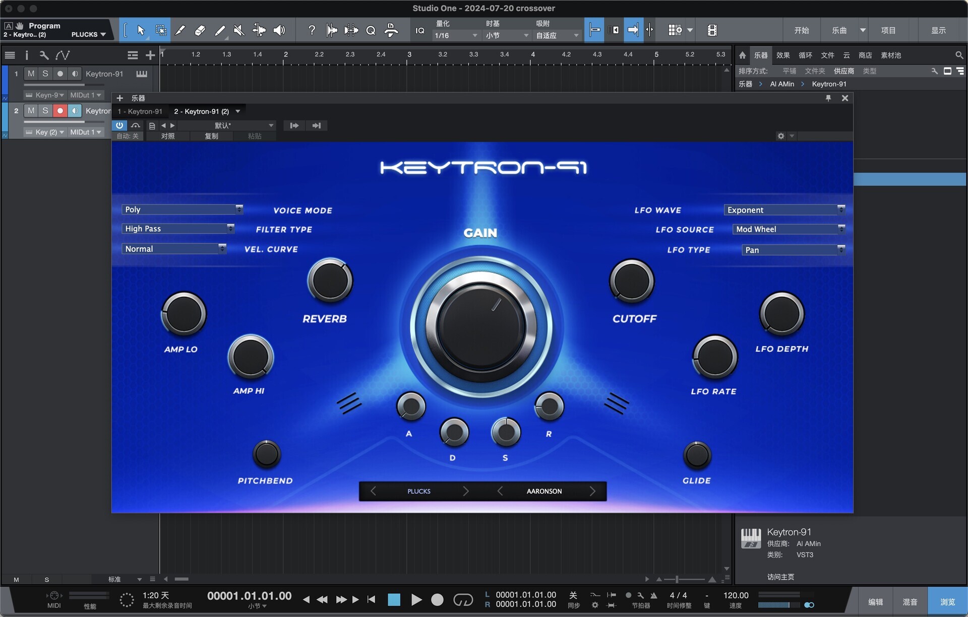 Keytron-91 VSTi 提供 250 多种乐器和多种类别供您选择,让您获得灵感!这款插件采用宇宙飞船风格的界面,将为您的音乐创作带来无限灵感!