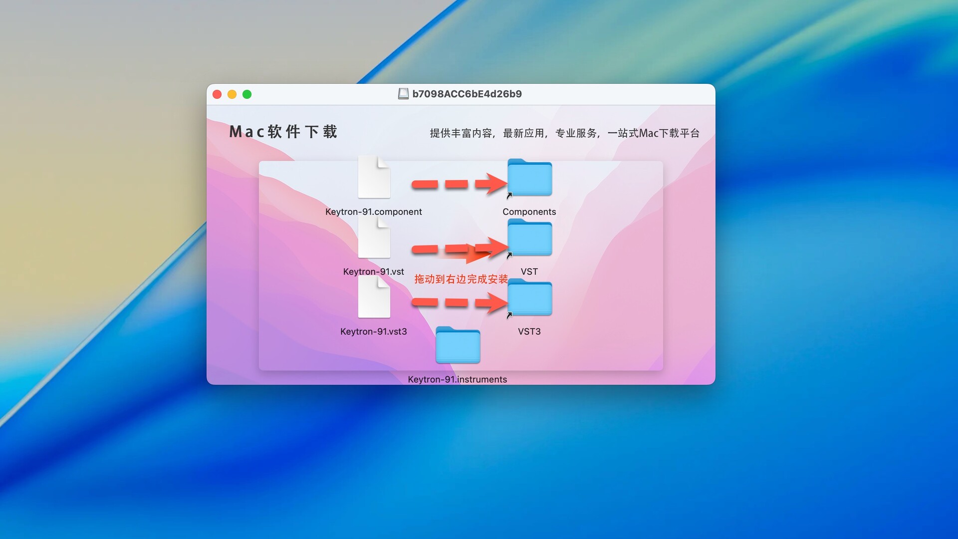 需要配合音频软件使用,如studio one安装包下载完成后,将左侧文件拖动到右侧文件夹