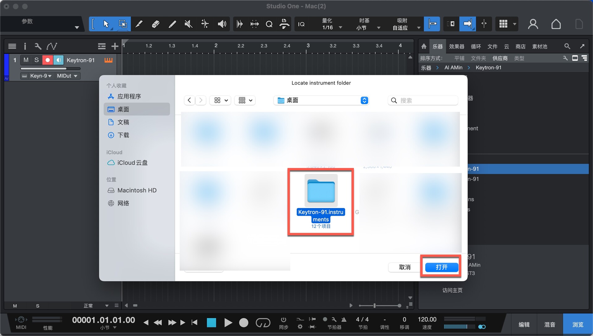 将音频文件Keytron-91.instruments拖动到桌面备用