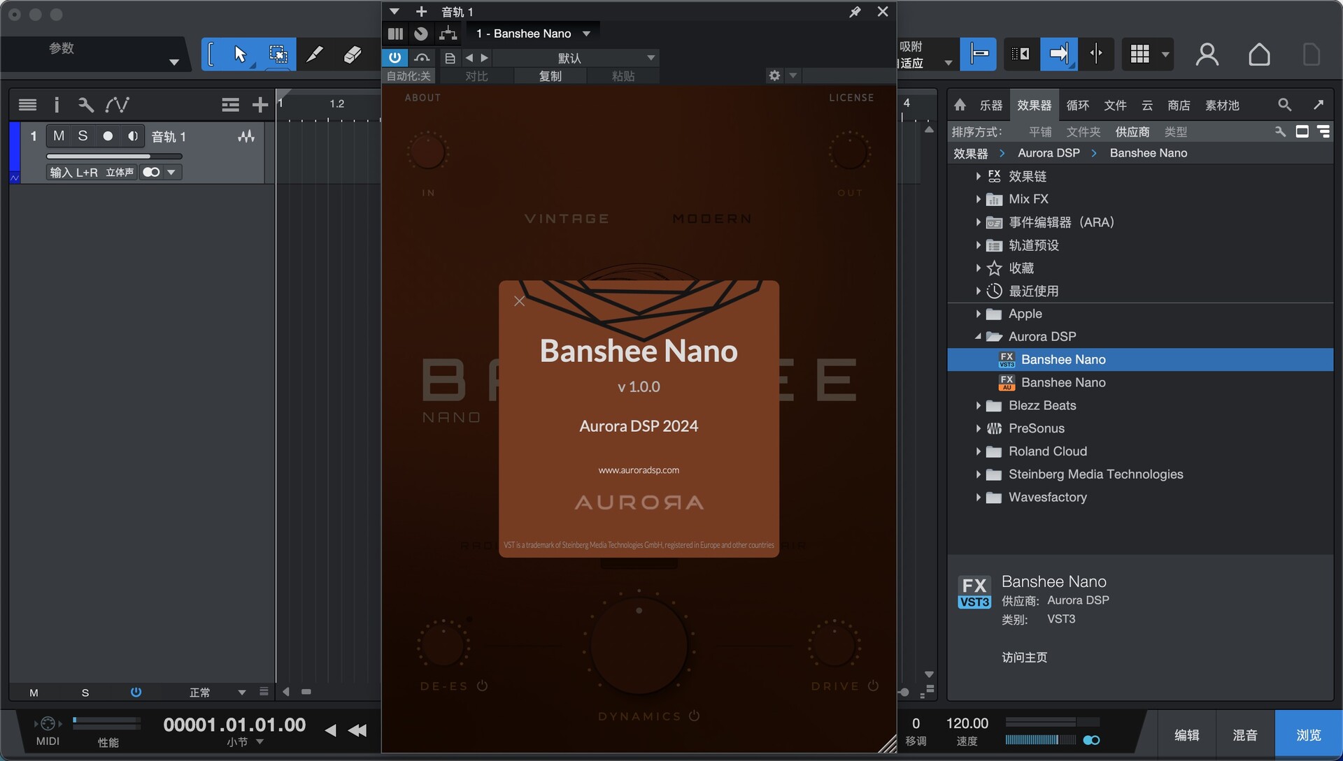 Aurora DSP Banshee Nano for mac插件安装教程
