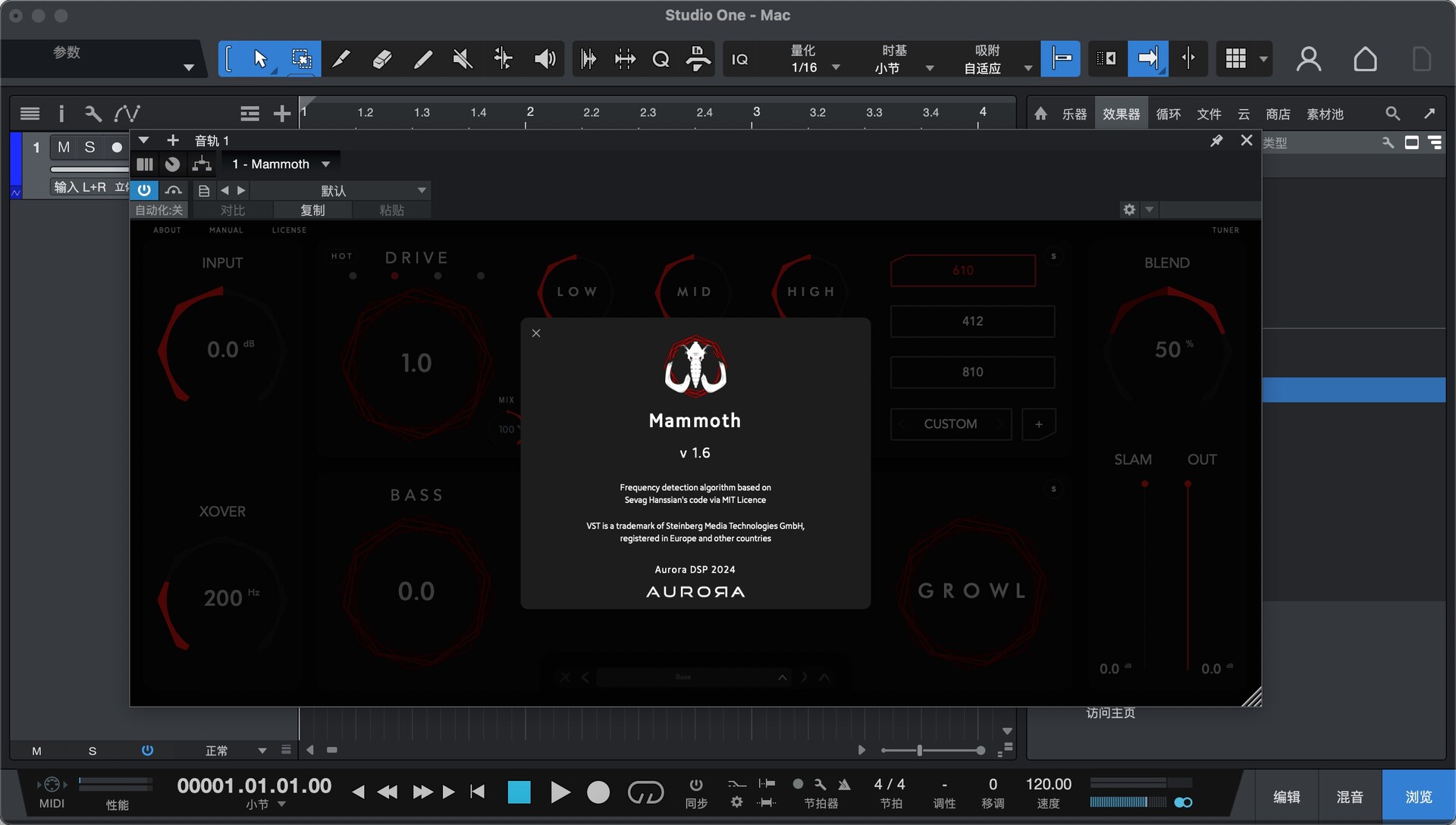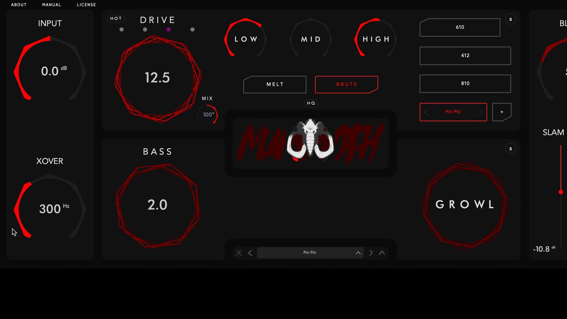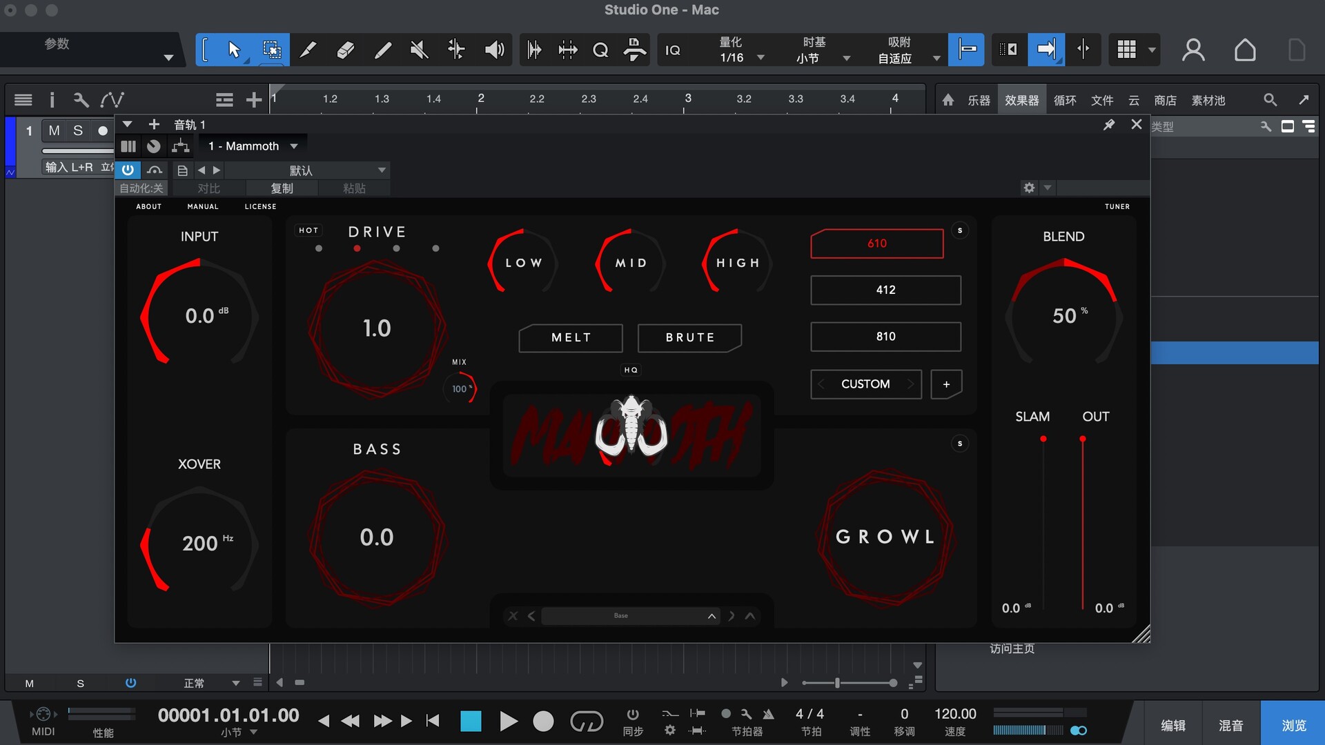 Mammoth 是一款功能强大且直观的低音插件,具有双波段信号处理功能,包括低音最大化器、3 种类型的驱动器、音调堆栈、机柜模拟等。我们在设计 Mammoth 时考虑到了简单性和灵活性。它专为艺术家、制作人和工程师打造。
