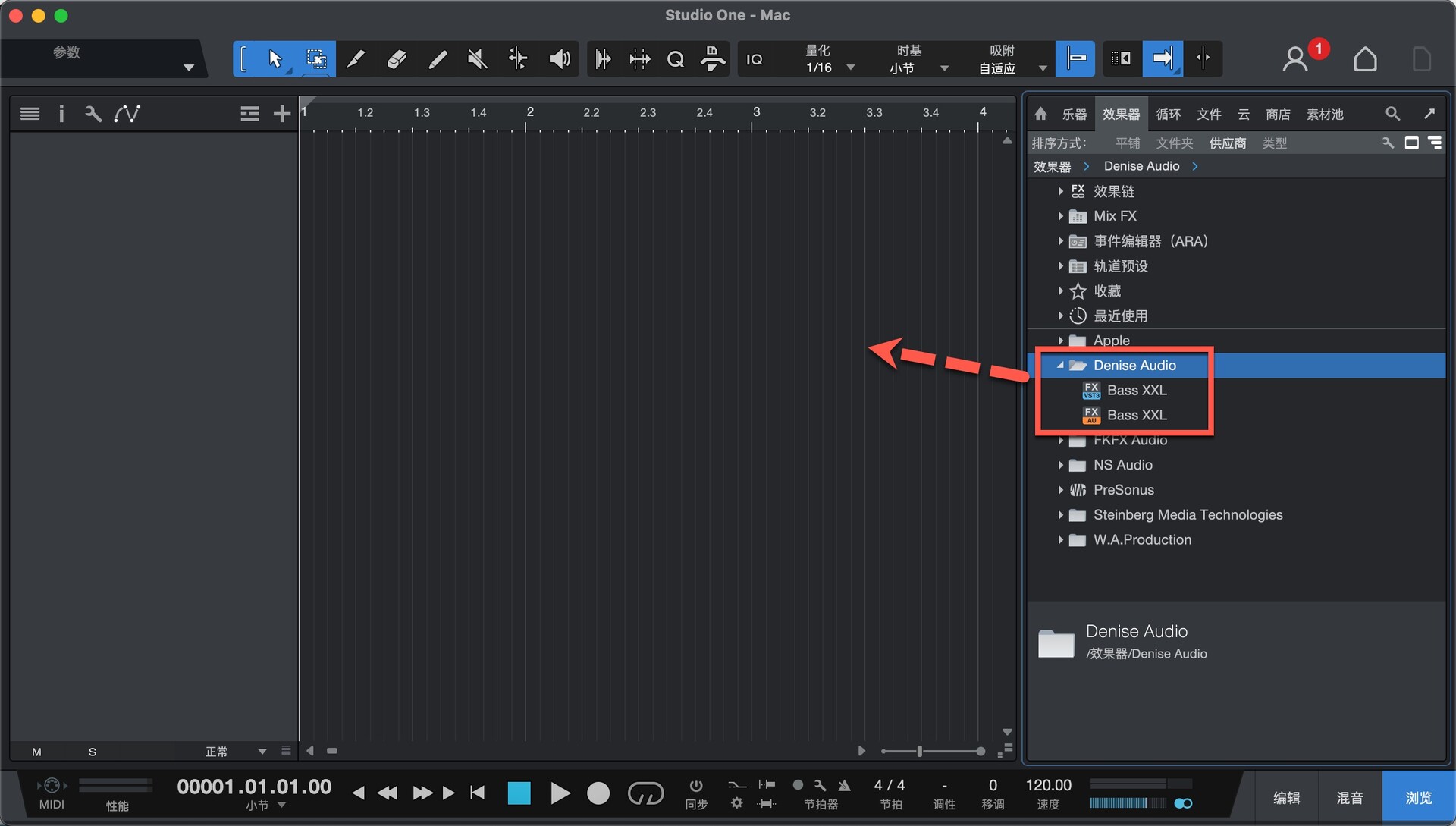 打开studio one,在效果-供应商中即可找到安装好的插件,将插件拖动到左侧空白处