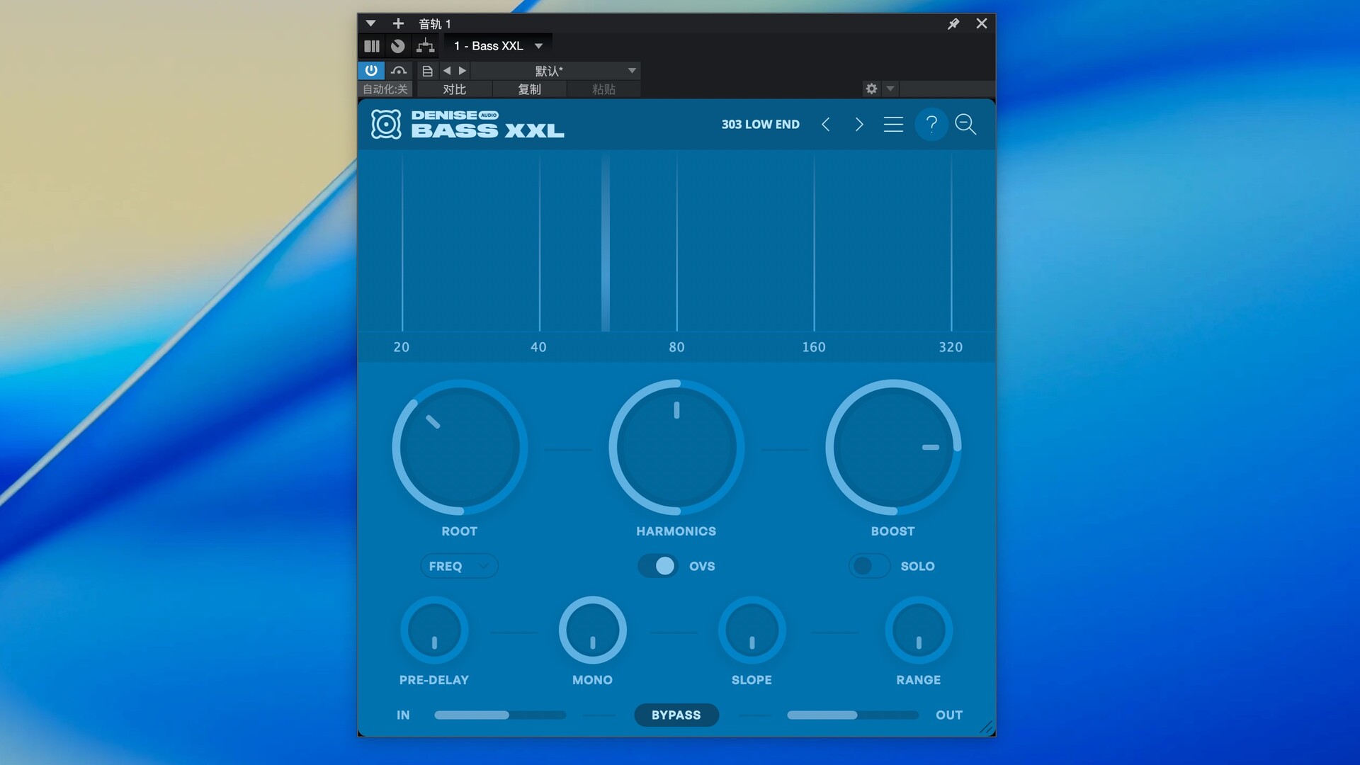 设置将生成多少个八度的 Bass XXL 谐波。高范围设置将使效果更清晰,而较低设置将使效果更微妙。