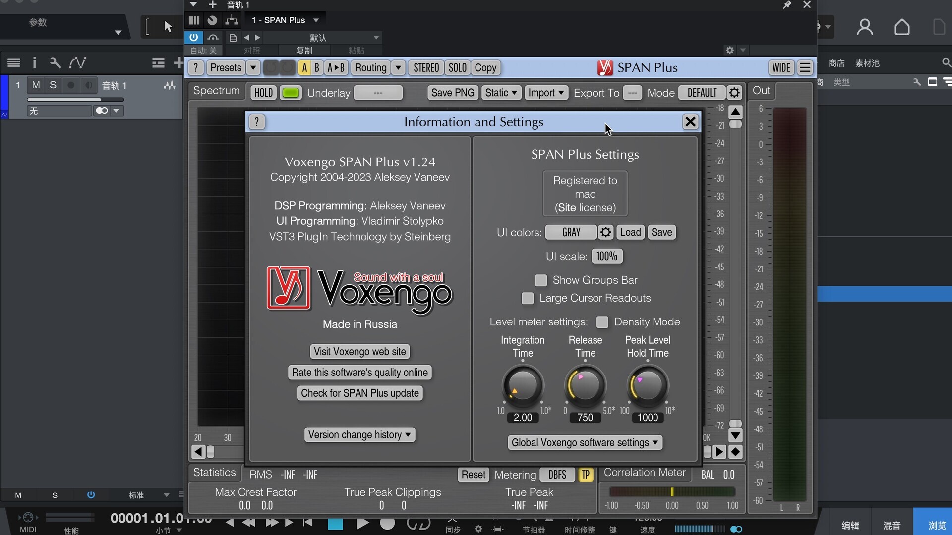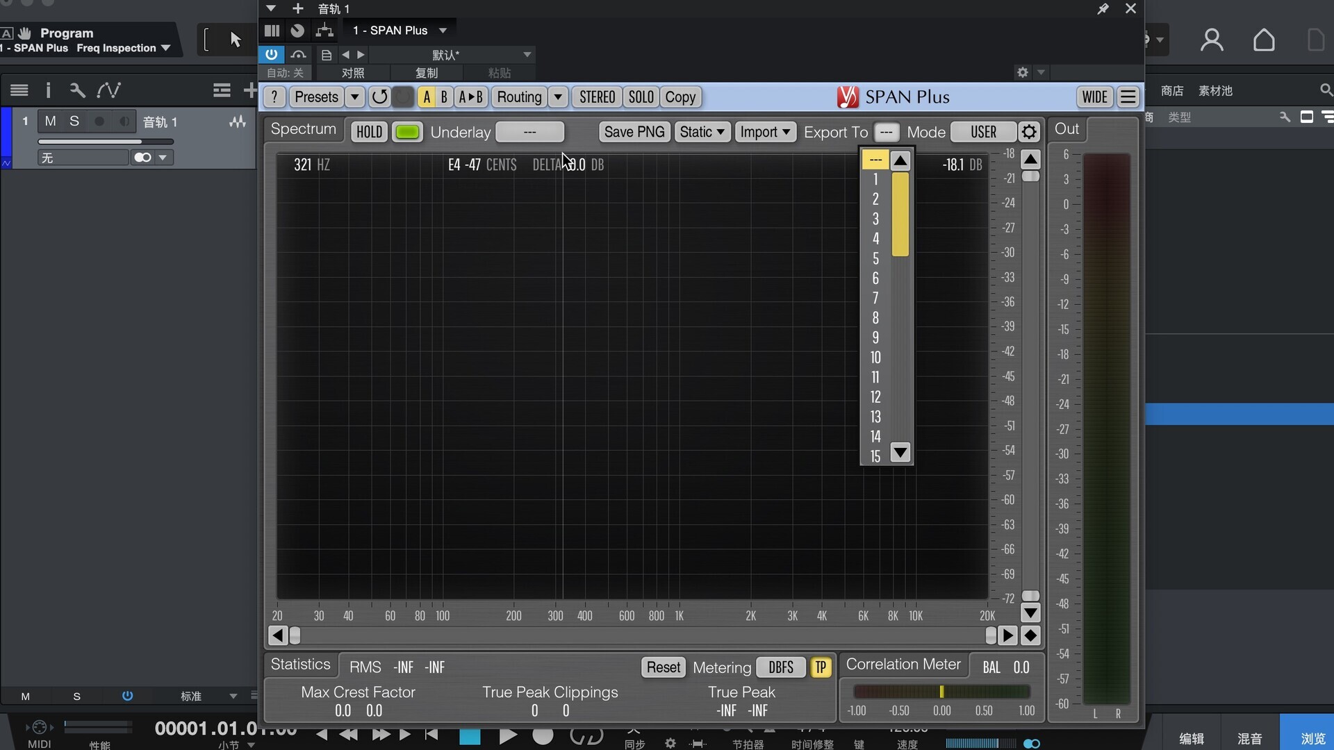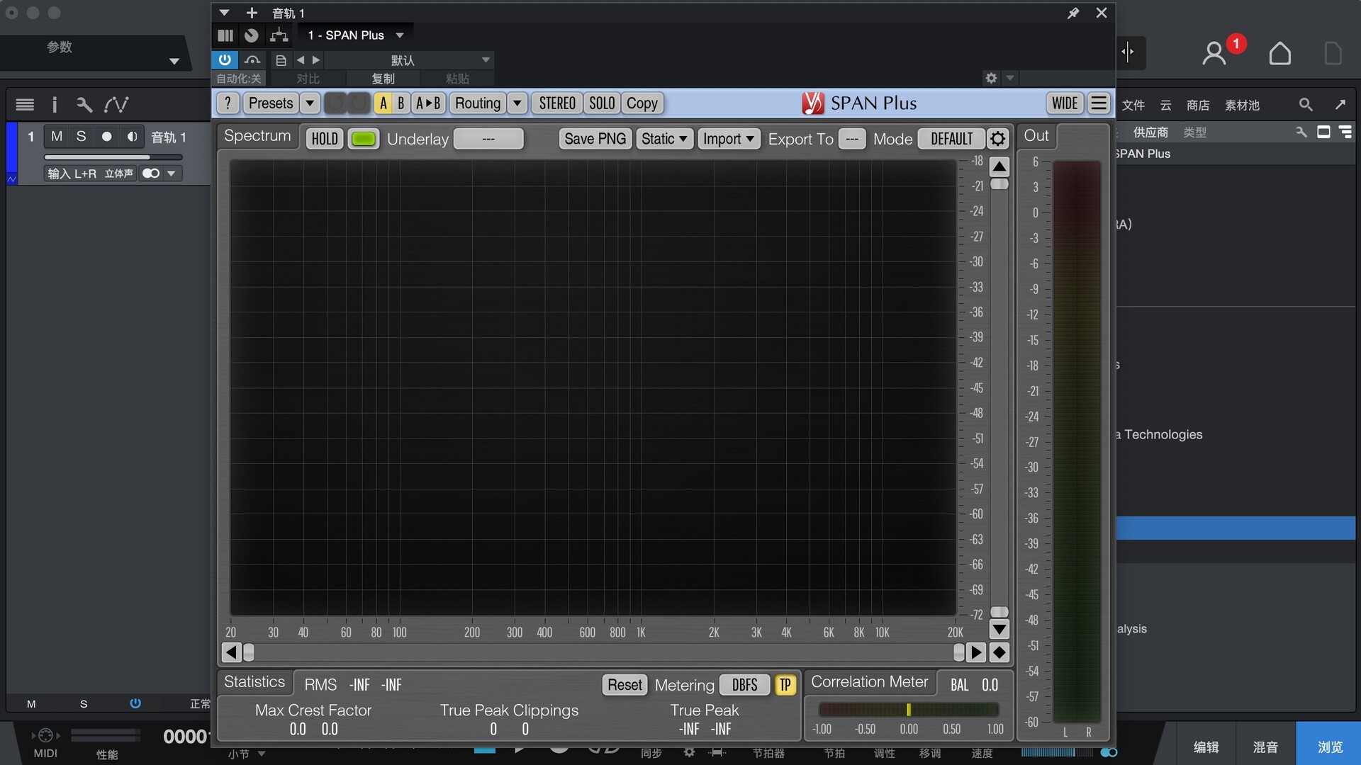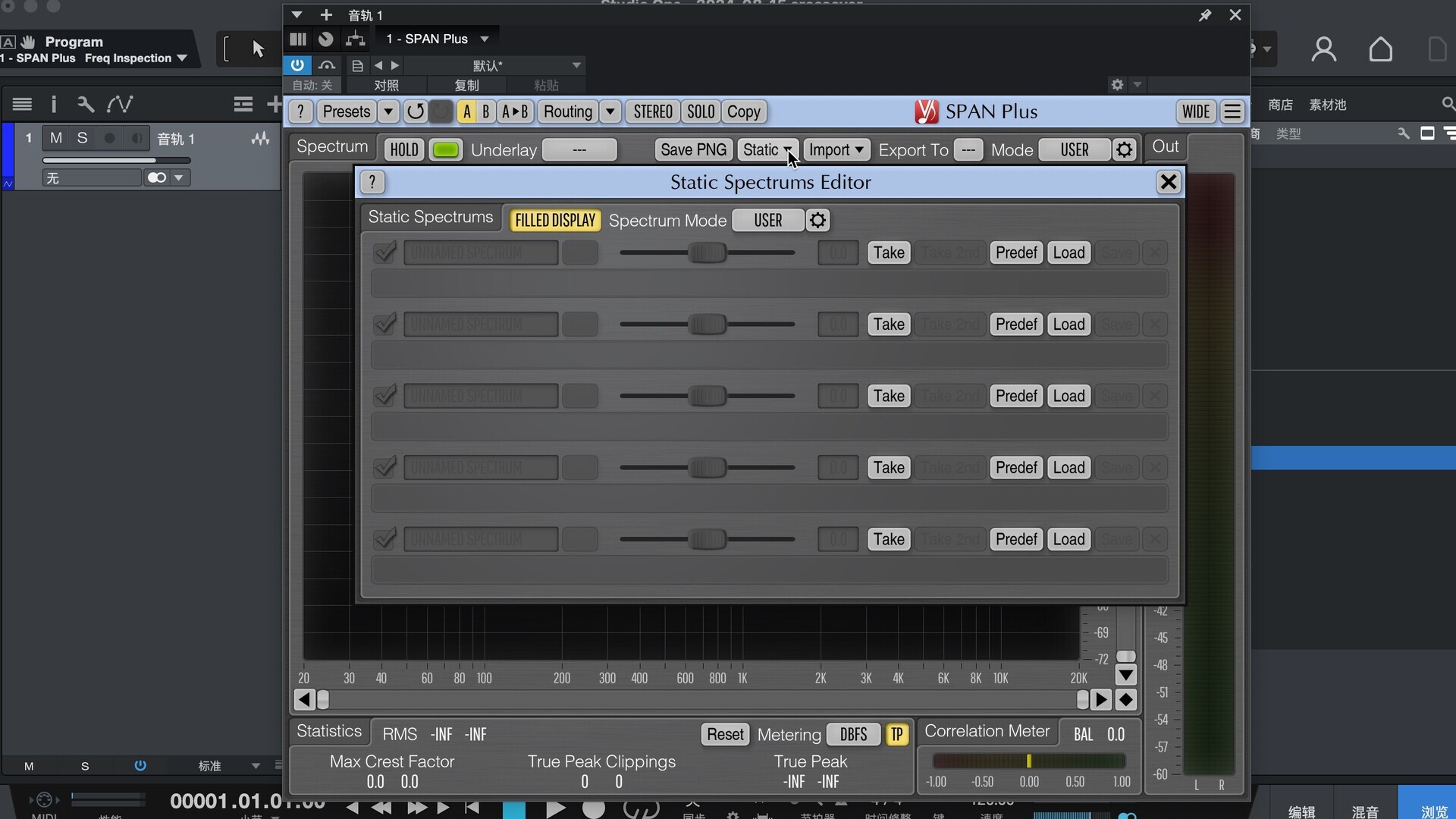 SPAN Plus 是免费软件 SPAN 插件的扩展版本:SPAN Plus 提供多种附加功能,例如 PNG 文件导出、用于多轨频谱比较的实时频谱导入/导出、静态频谱显示和“宽”显示模式。SPAN Plus