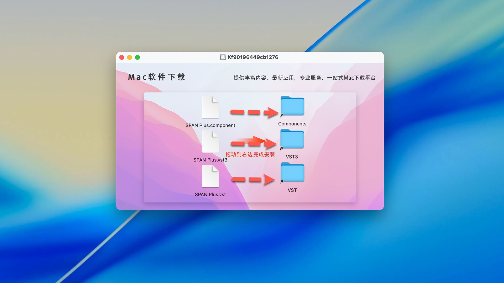 安装包下载完成后,将左侧文件拖动到右侧对应的文件夹内