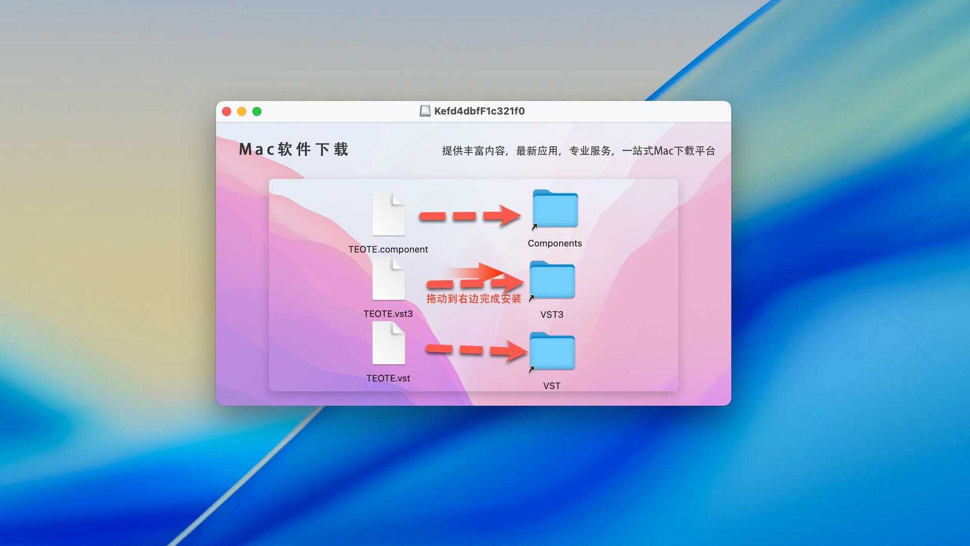 插件必须搭配Studio One一起使用,请先安装Studio One!安装包下载完成后打开,将左侧文件拖动到右侧即可