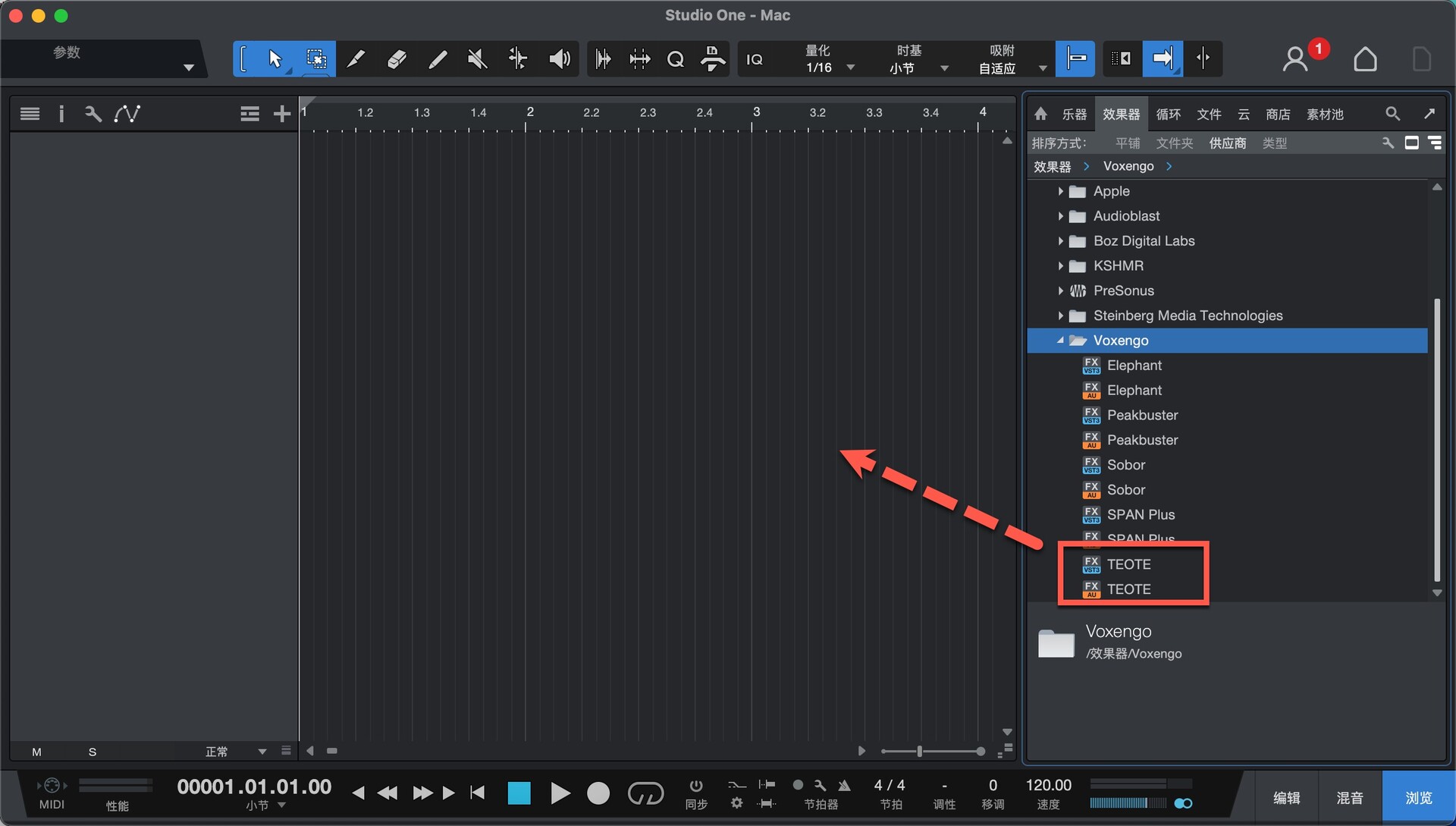 打开Studio One在效果-供应商下即可找到插件,拖动到左侧即可