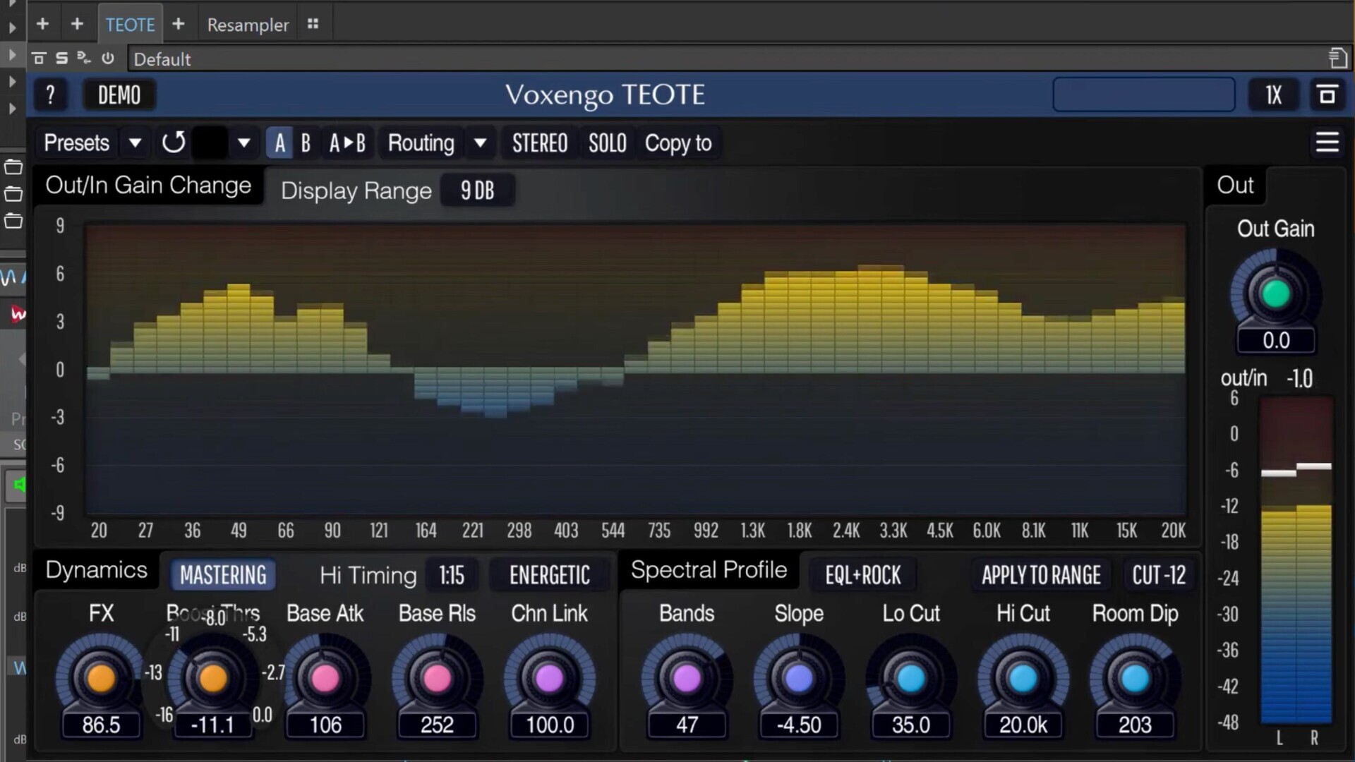 虽然TEOTE的定义是一个动态均衡器,但它的技术完全基于多波段动态处理。这使得TEOTE只有轻微的相位问题,并产生与动态处理相关的微妙的瞬态强调效果。TEOTE试图使程序材料遵循指定的光谱轮廓,默认情况下调到当代母带标准。可以说,TEOTE“拉直”了频率响应,使进一步的调整容易得多;它省去了很多重复的工作。