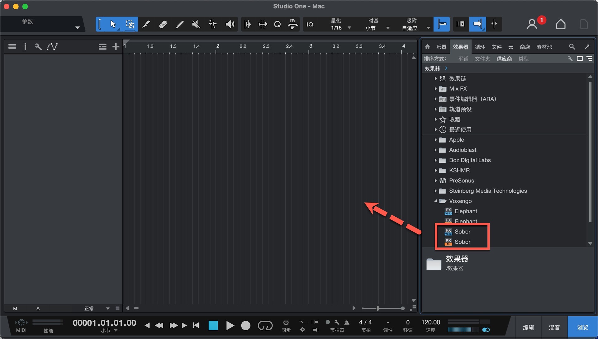 打开studio one ,在效果-供应商中即可找到安装好的插件