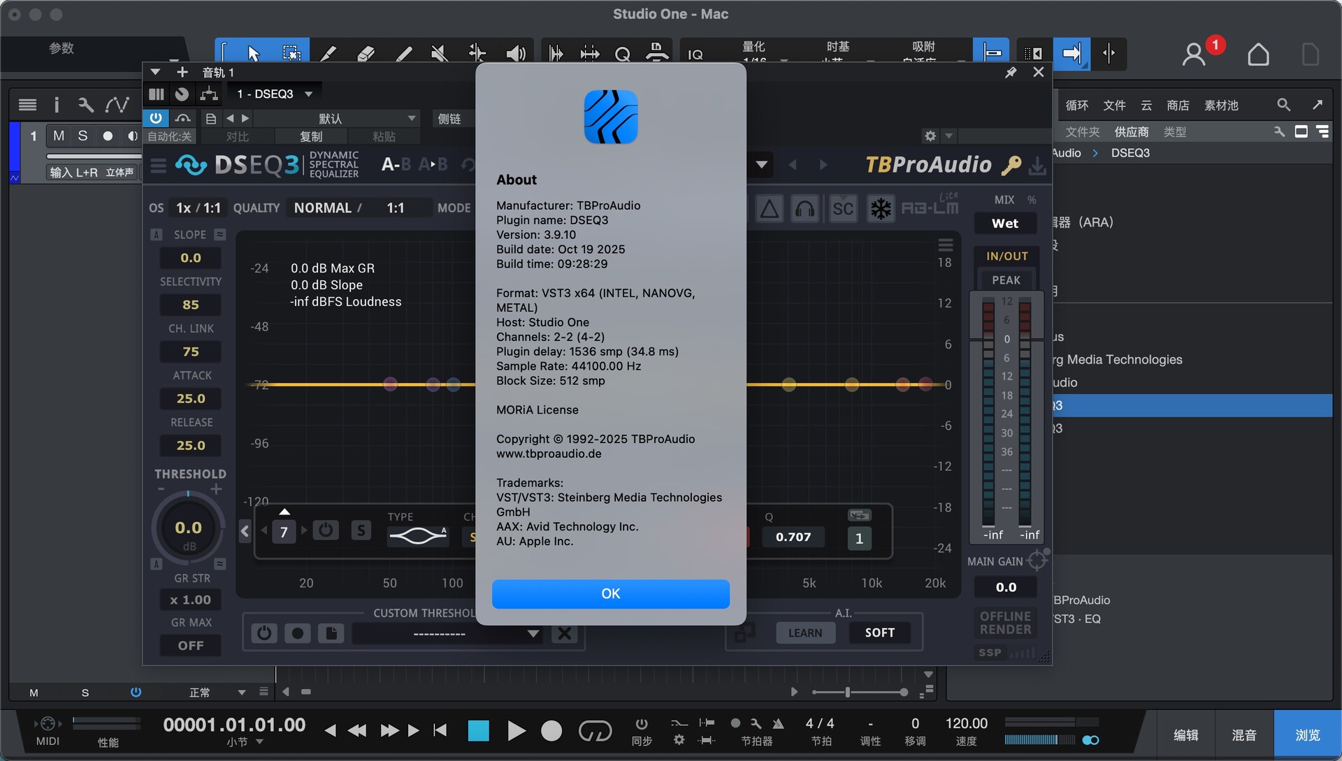 插件需要搭配音频软件使用,如Studio One下载完成后打开镜像包,双击.pkg安装器默认安装