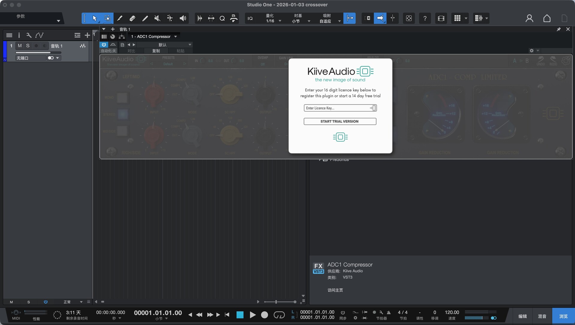 需搭配studio one使用,测试环境macOS26.2系统,studio one 7ADC1 压缩机下载完成后打开,双击.pkg文件,根据安装器提示进行安装