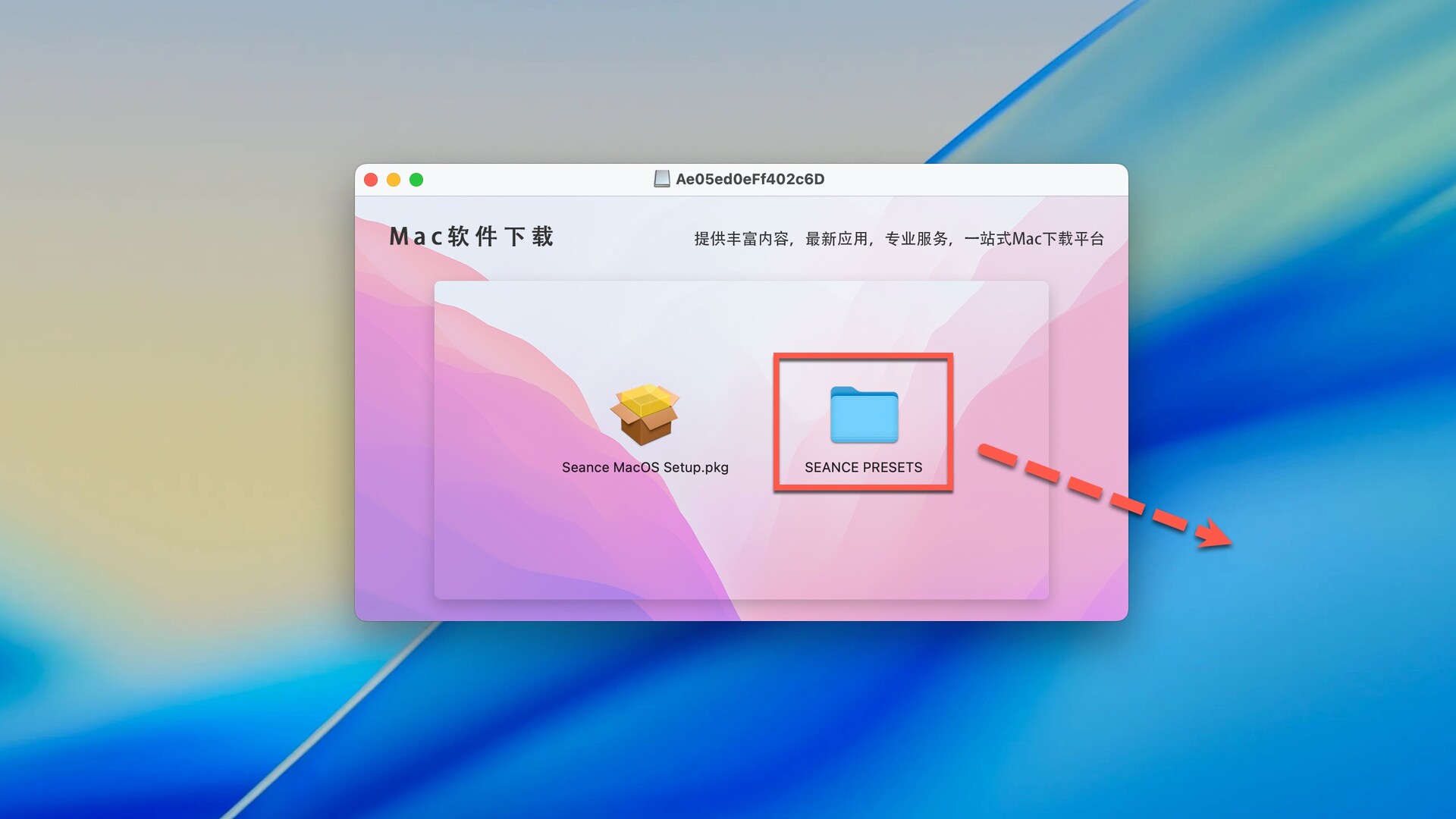 返回安装包,将seance presets文件夹拖动到桌面(该文件夹不能删除)
