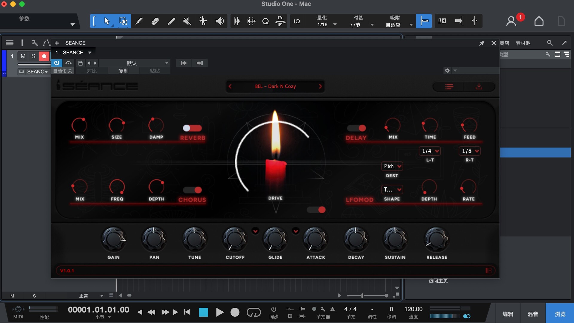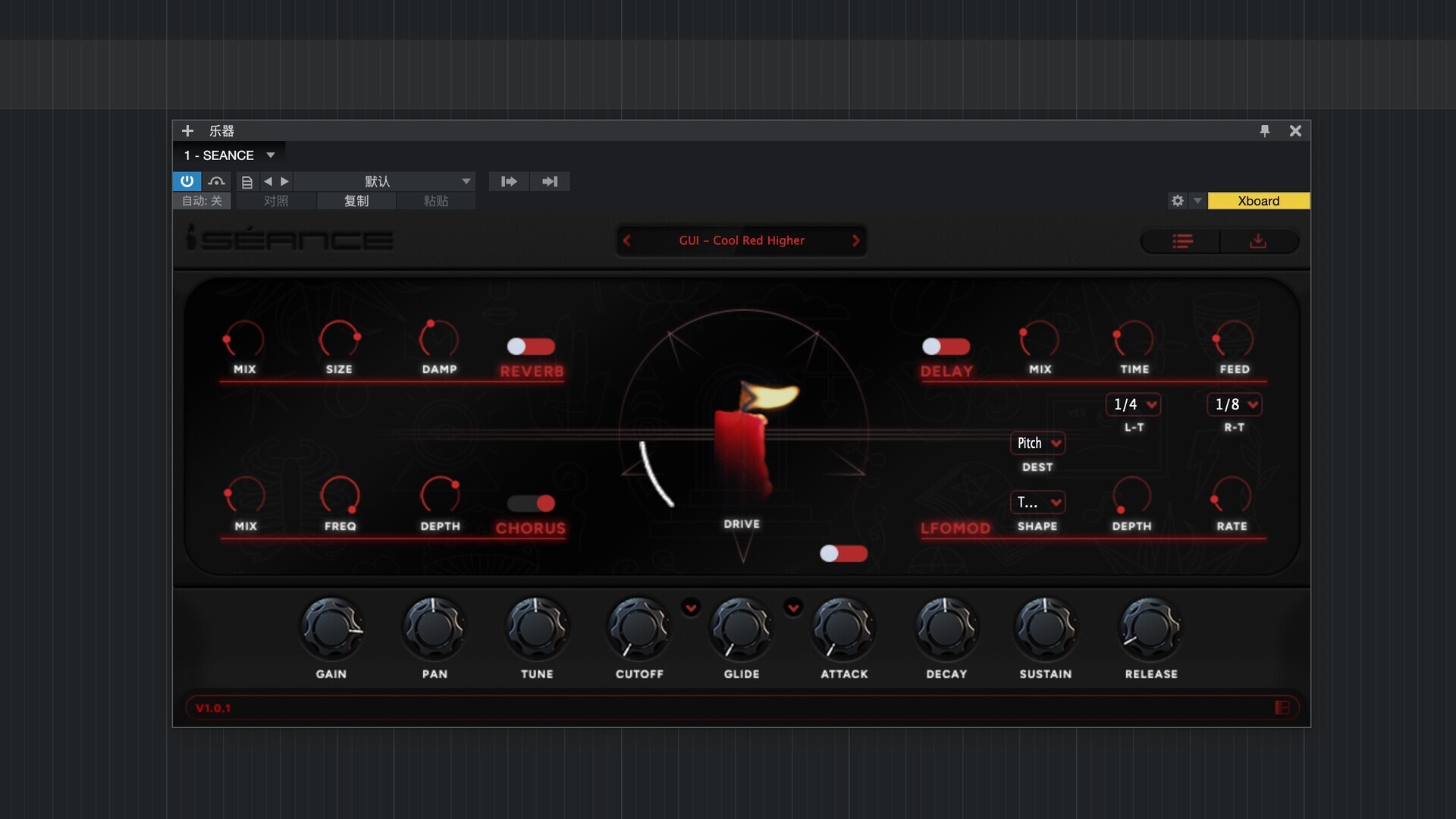 SEANCE配备了大量的 EFX,如:合唱、延迟、失真、LFO MOD、滑音、混响等。