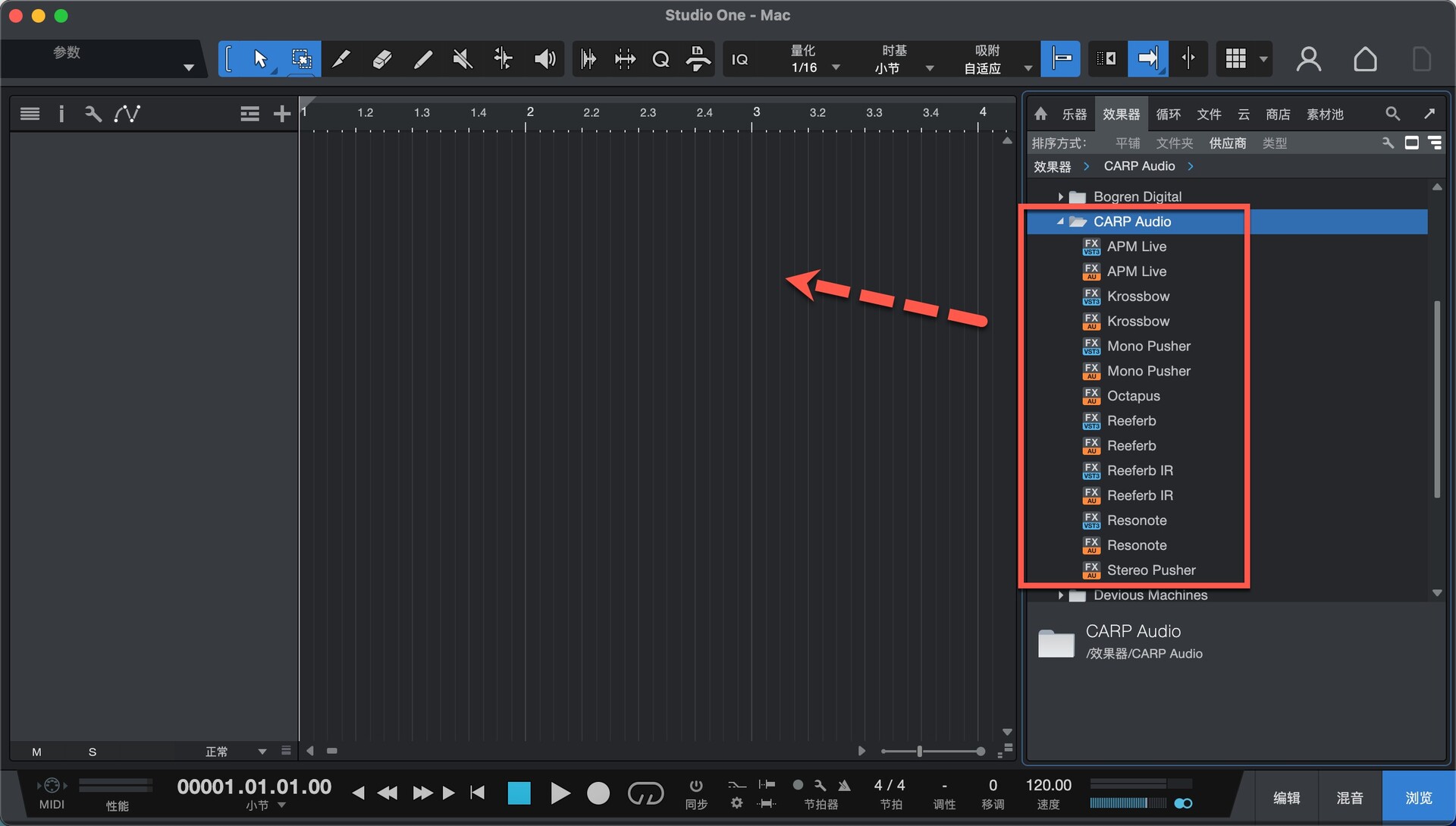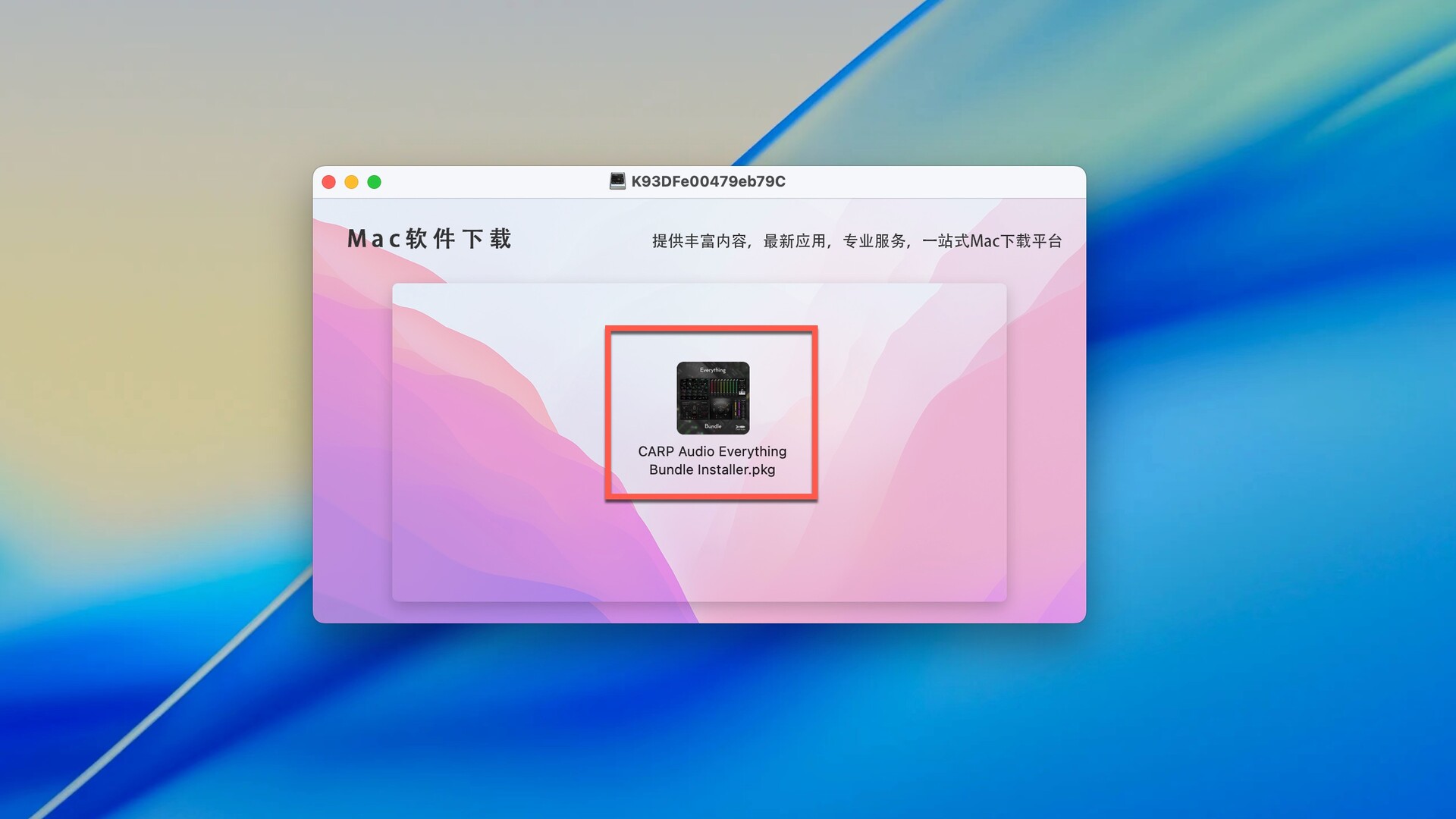需搭配音频软件使用,如studio oneCARP Audio Everything Bundle下载完成后打开,双击.pkg文件根据安装器提示进行安装即可