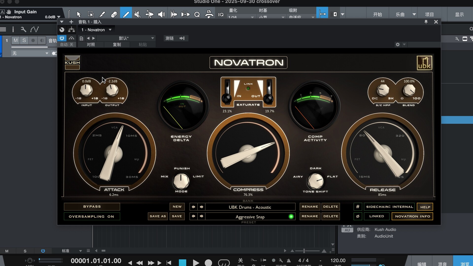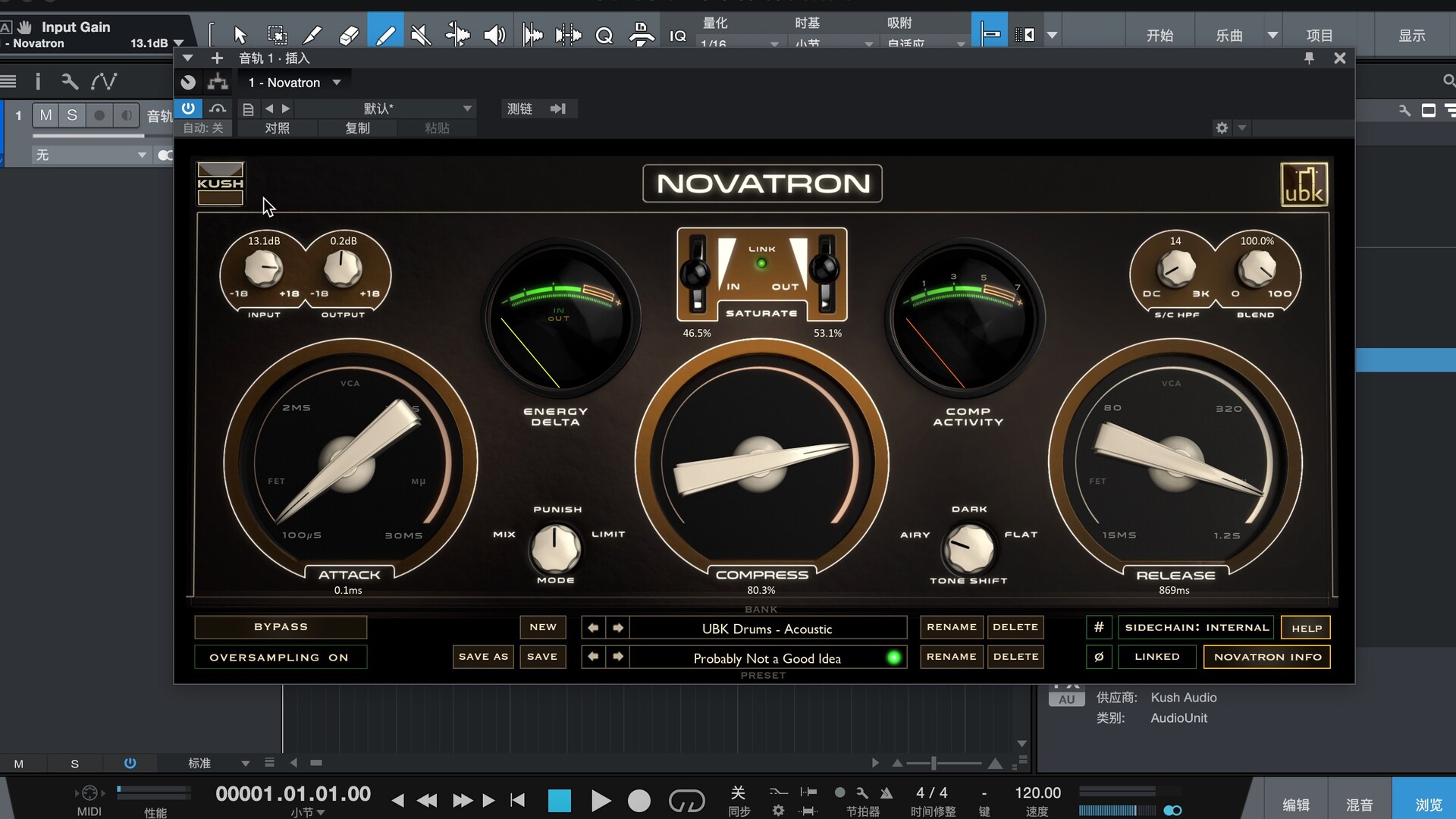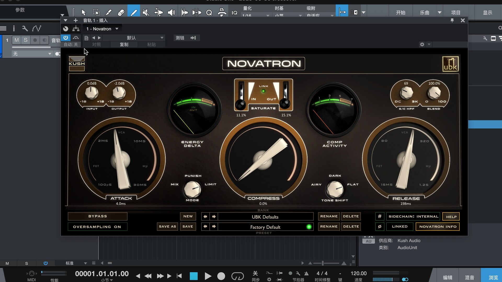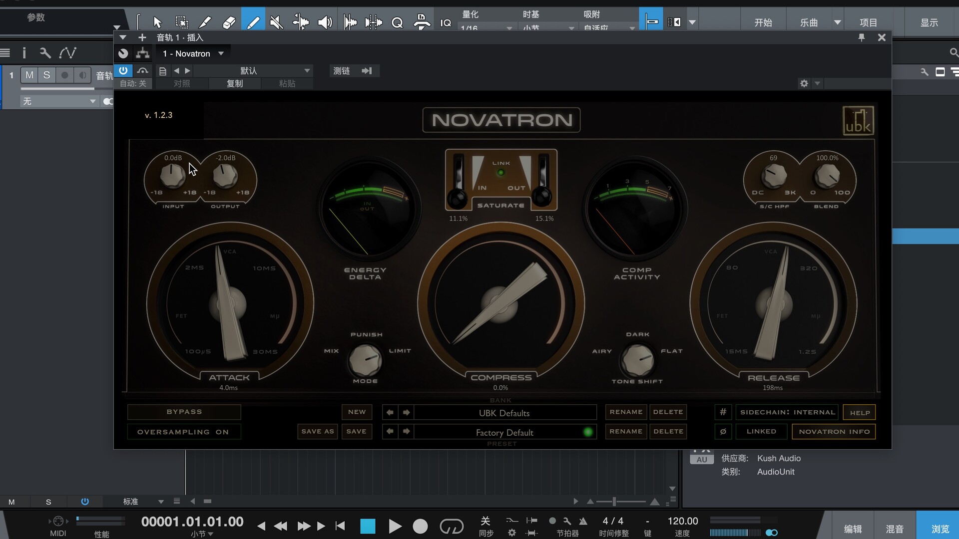 Novatron 的声音 Novatron 是一款模拟建模的压缩器,它从许多不同的分类硬件单元中借用了许多声音特性,具有讽刺意味的是,它只能存在于 DSP 世界中。