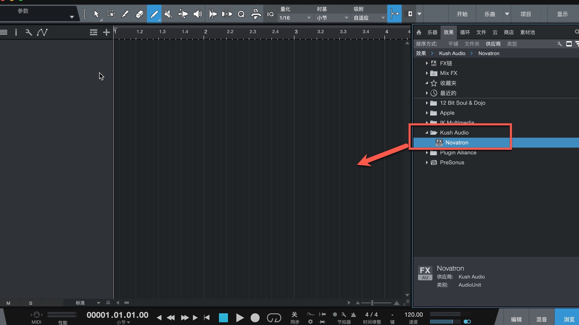 打开studio one,再效果-供应商下即可找到安装好的插件,拖动到左侧即可使用