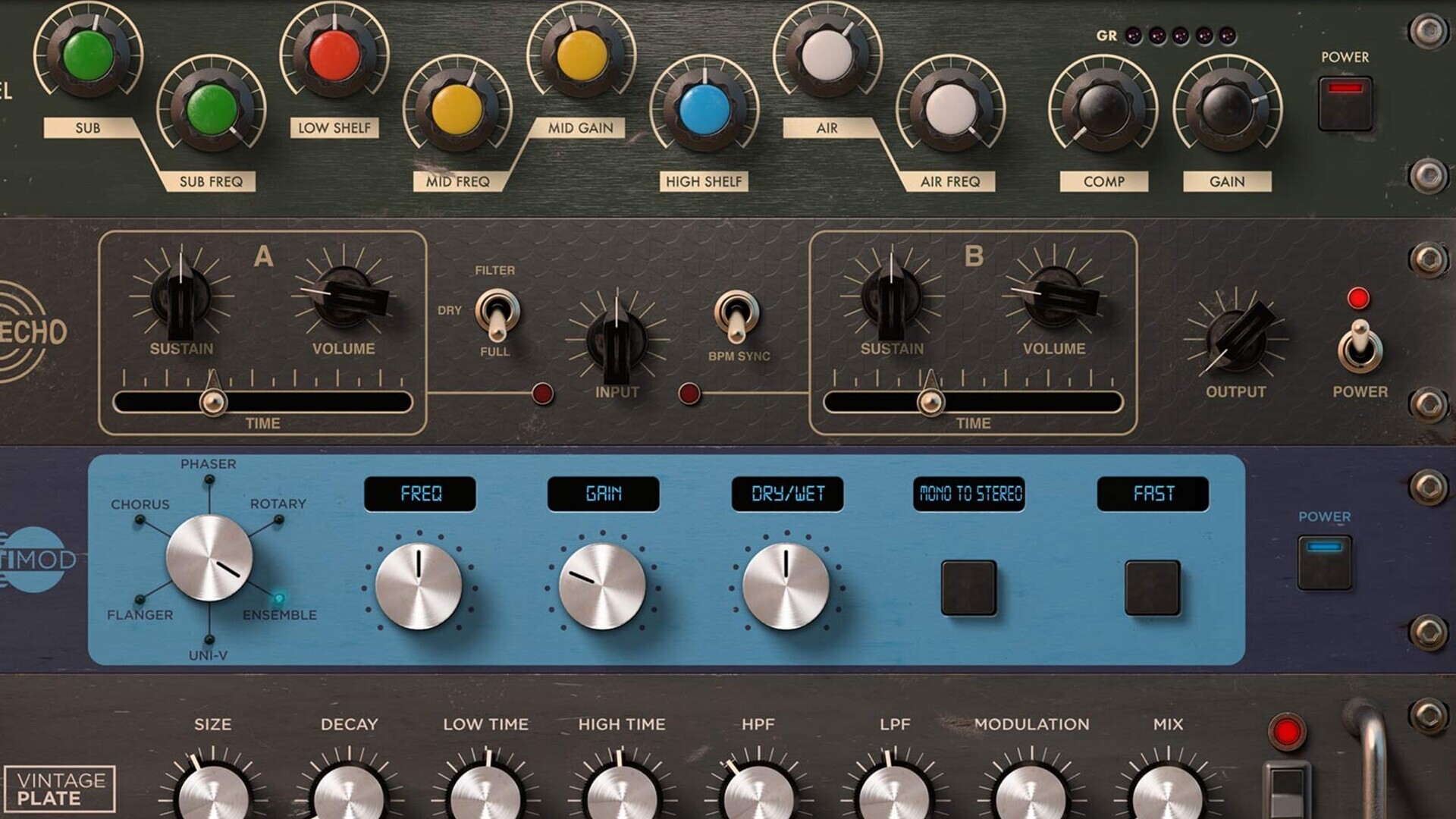 SampleTron 2 包含一组强大的效果,可让每次表演都具有您音乐所需的深度和维度。效果包括 Channel Strip 均衡器和压缩器、Tape Echo、Multimod(可选合唱、合奏、镶边、移相、Uni-V 和 Rotary Speaker)以及基于为 AmpliTube 5 和 MixBox 开发的 Plate 算法的全新 Vintage Plate Reverb。这些效果音质出色,充分利用了 IK 在该领域的专业知识,我们选择了与 SampleTron 2 完美匹配的效果。