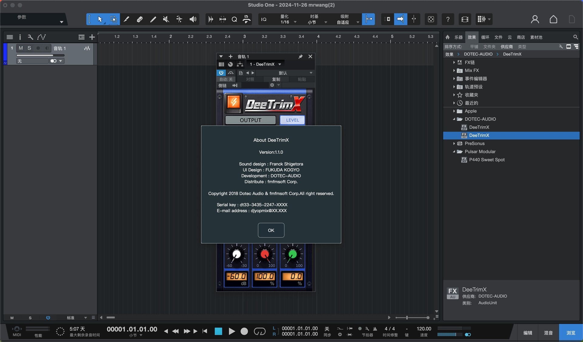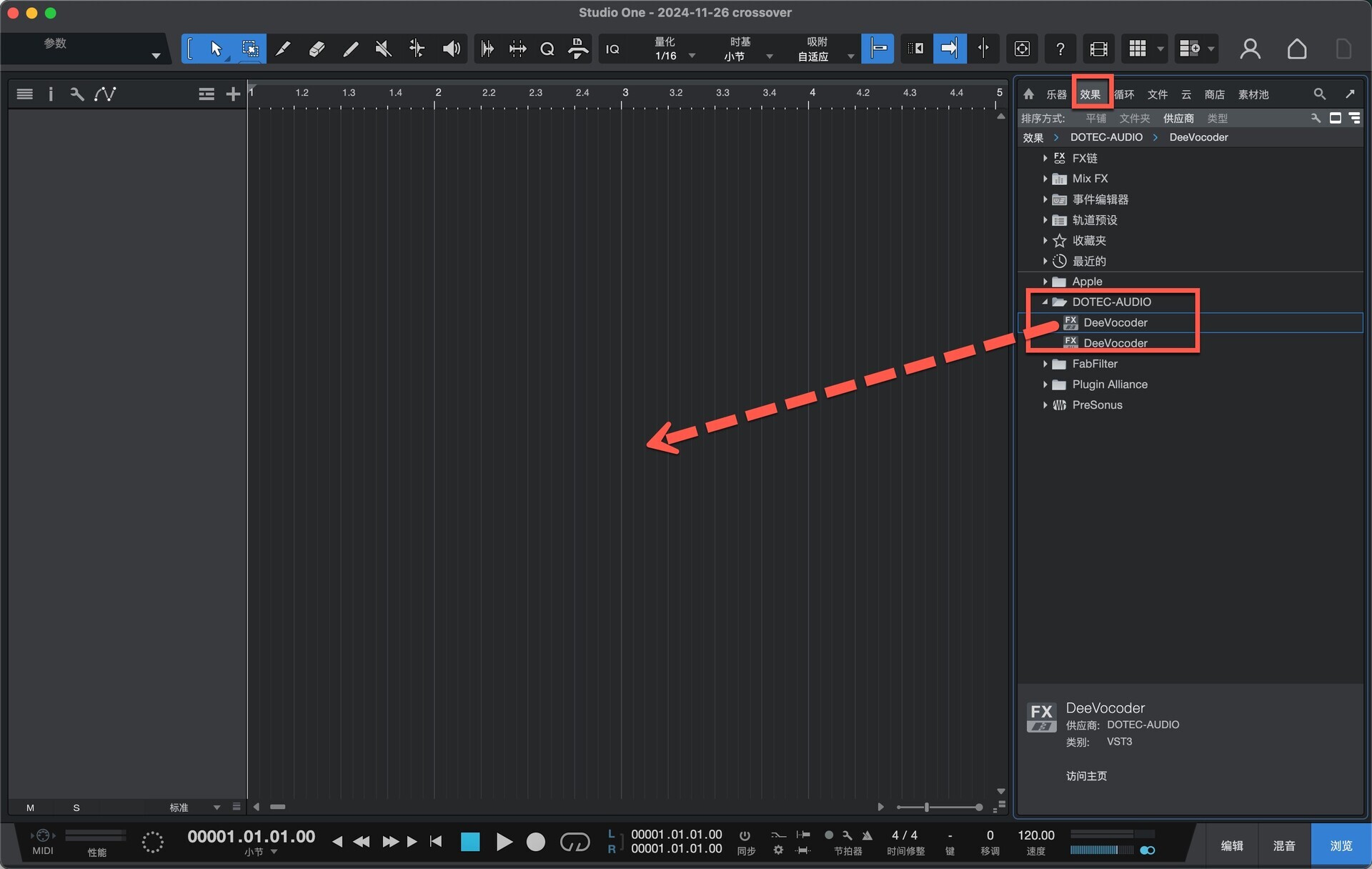 打开Studio One在效果-供应商下即可找到插件,拖动到左侧即可