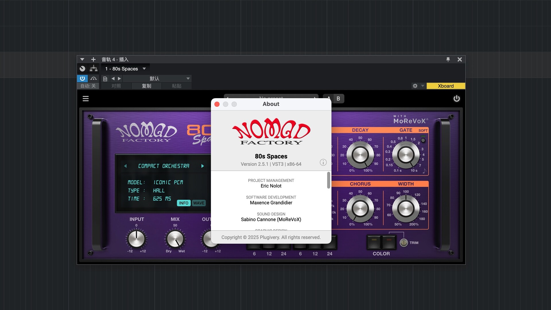 该插件由 Nomad Factory 与 Plugivery 和 MoReVox 合作开发,旨在模拟那个时代的传奇艺术家和制作人使用的典型混响和空间效果,例如迈克尔·杰克逊、麦当娜、杜兰杜兰、大卫·鲍伊、U2、皇后乐队等。80s Spaces