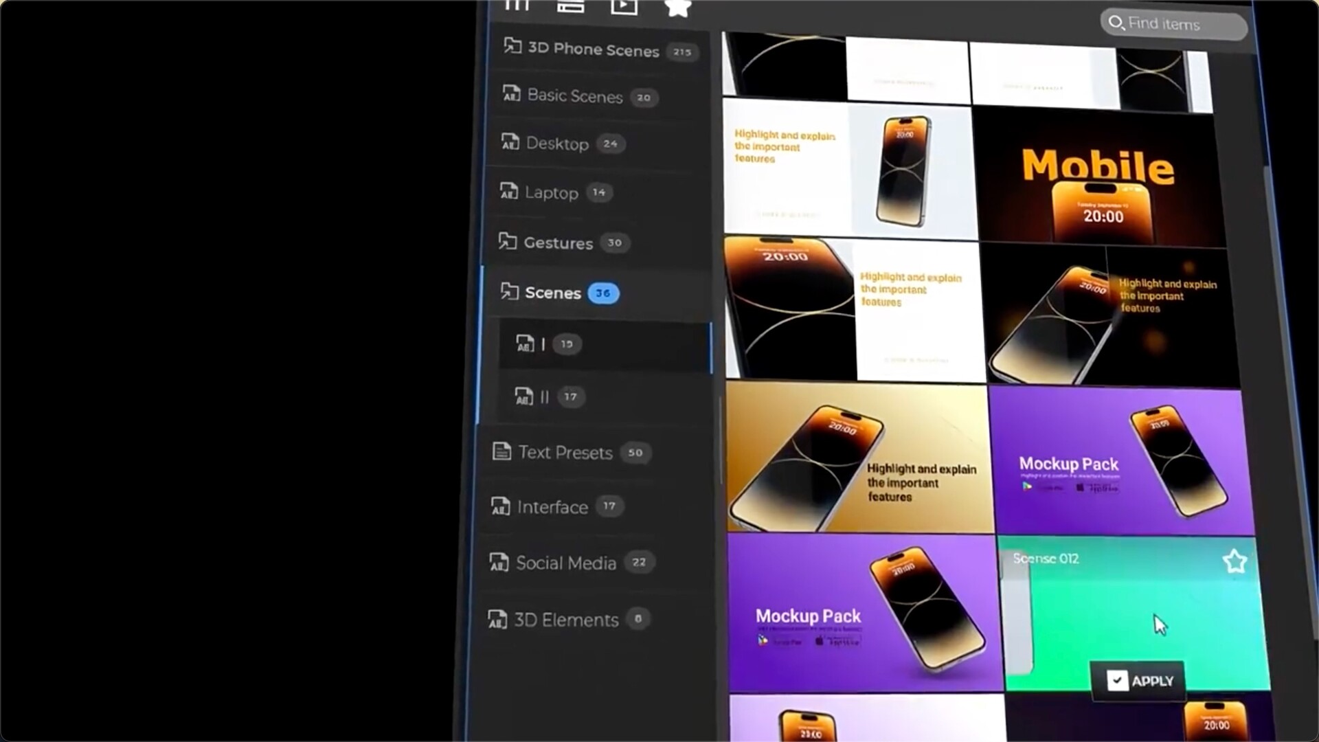 脚本中提供了一些安卓苹果手机平板电脑APP宣传展示预设动画,使用 AtomX 脚本加载,可视化预览,点击即可加载使用。