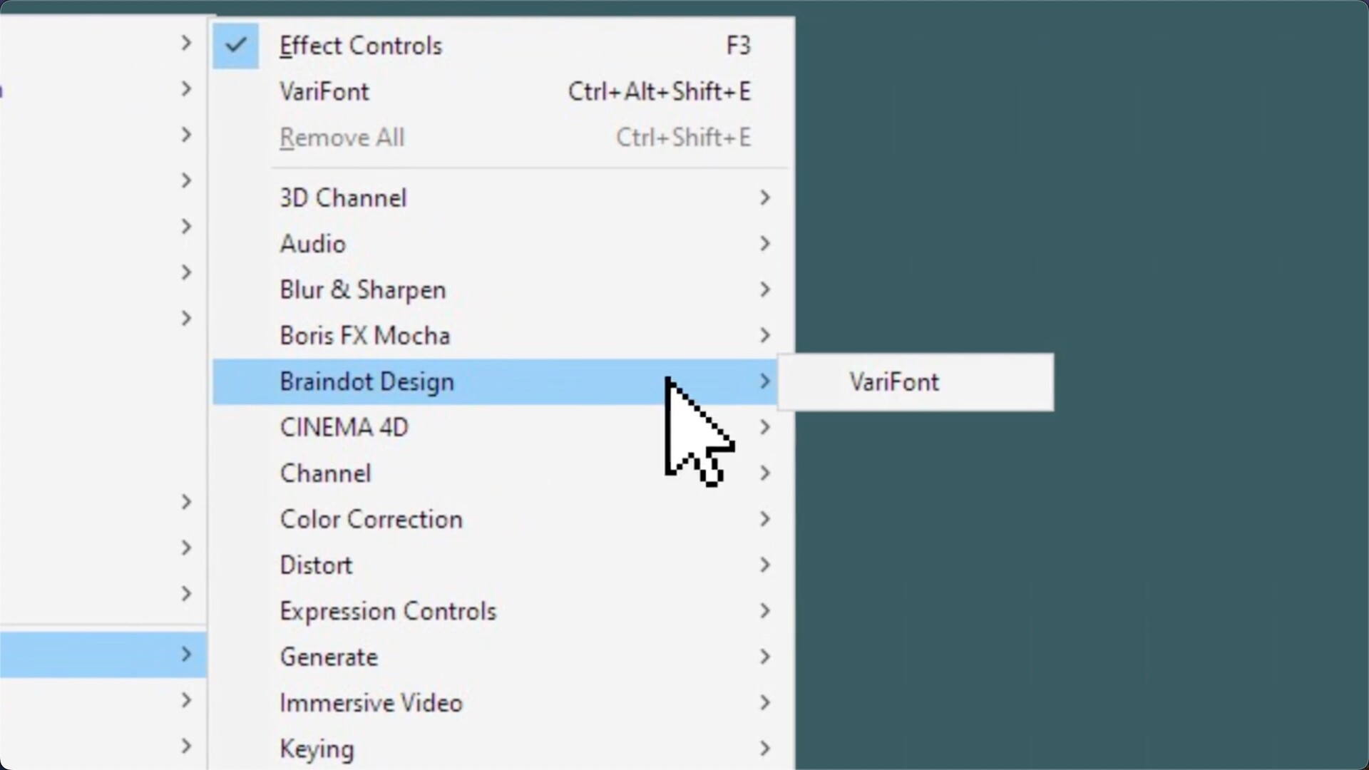 运行AE软件,在菜单栏“效果”一栏下就能找到安装好的VariFont插件了。