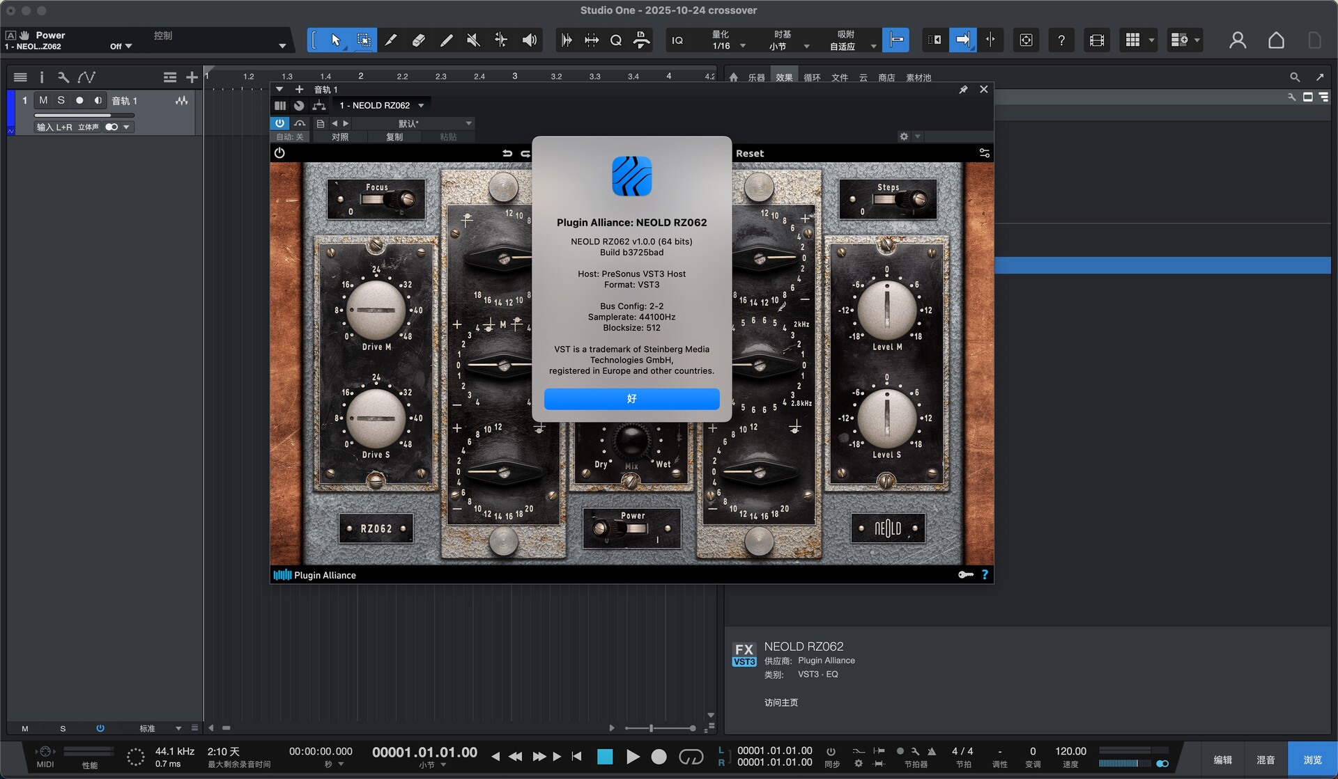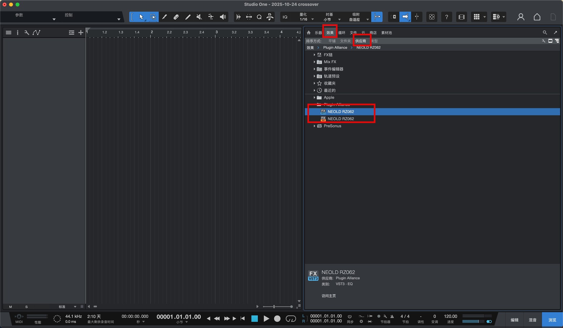 打开studio one,在效果-供应商中即可找到安装好的插件,如图