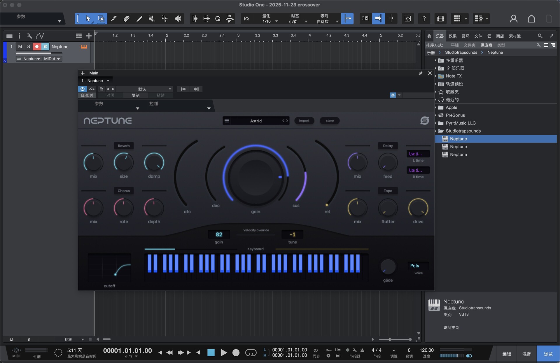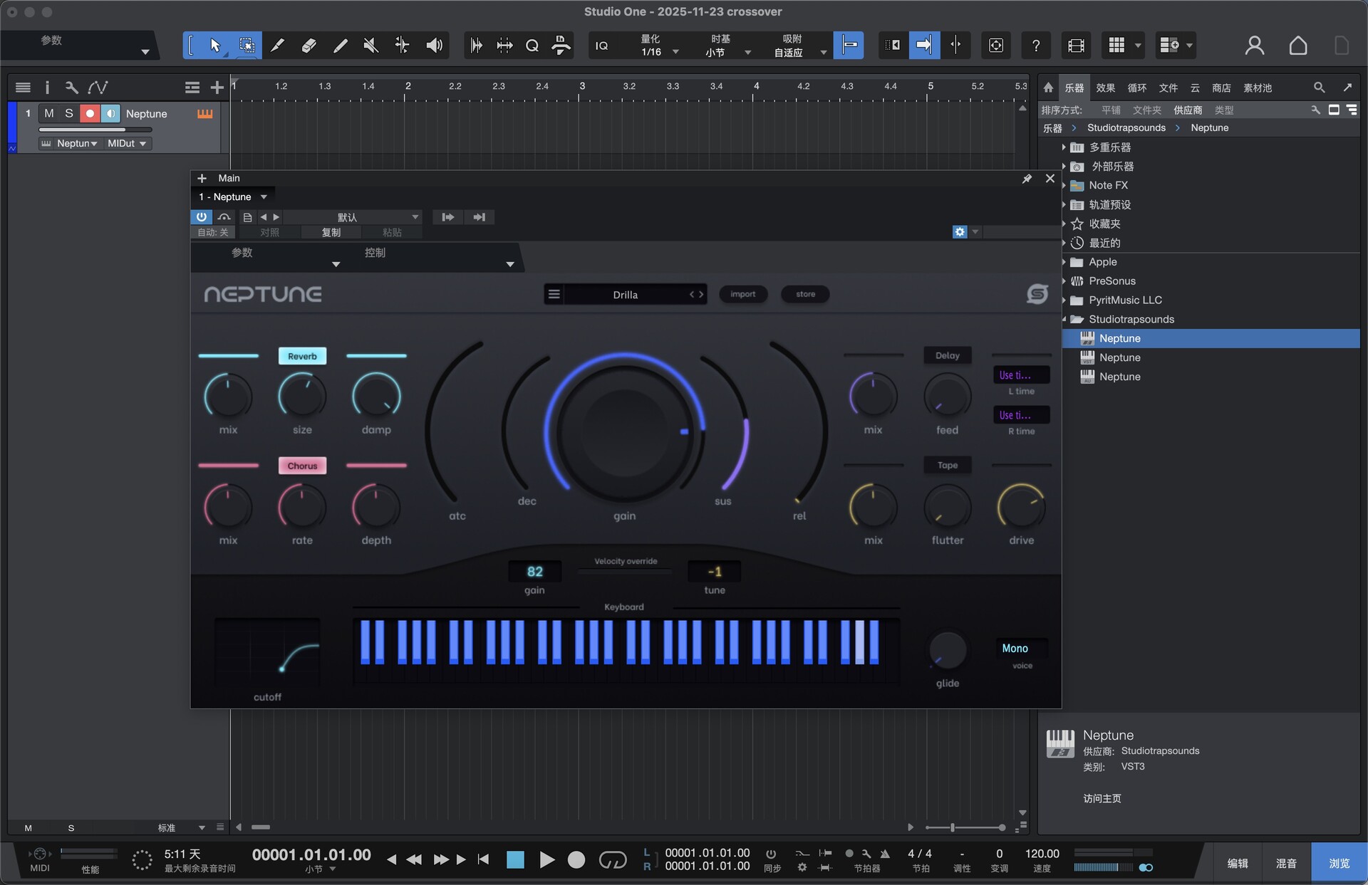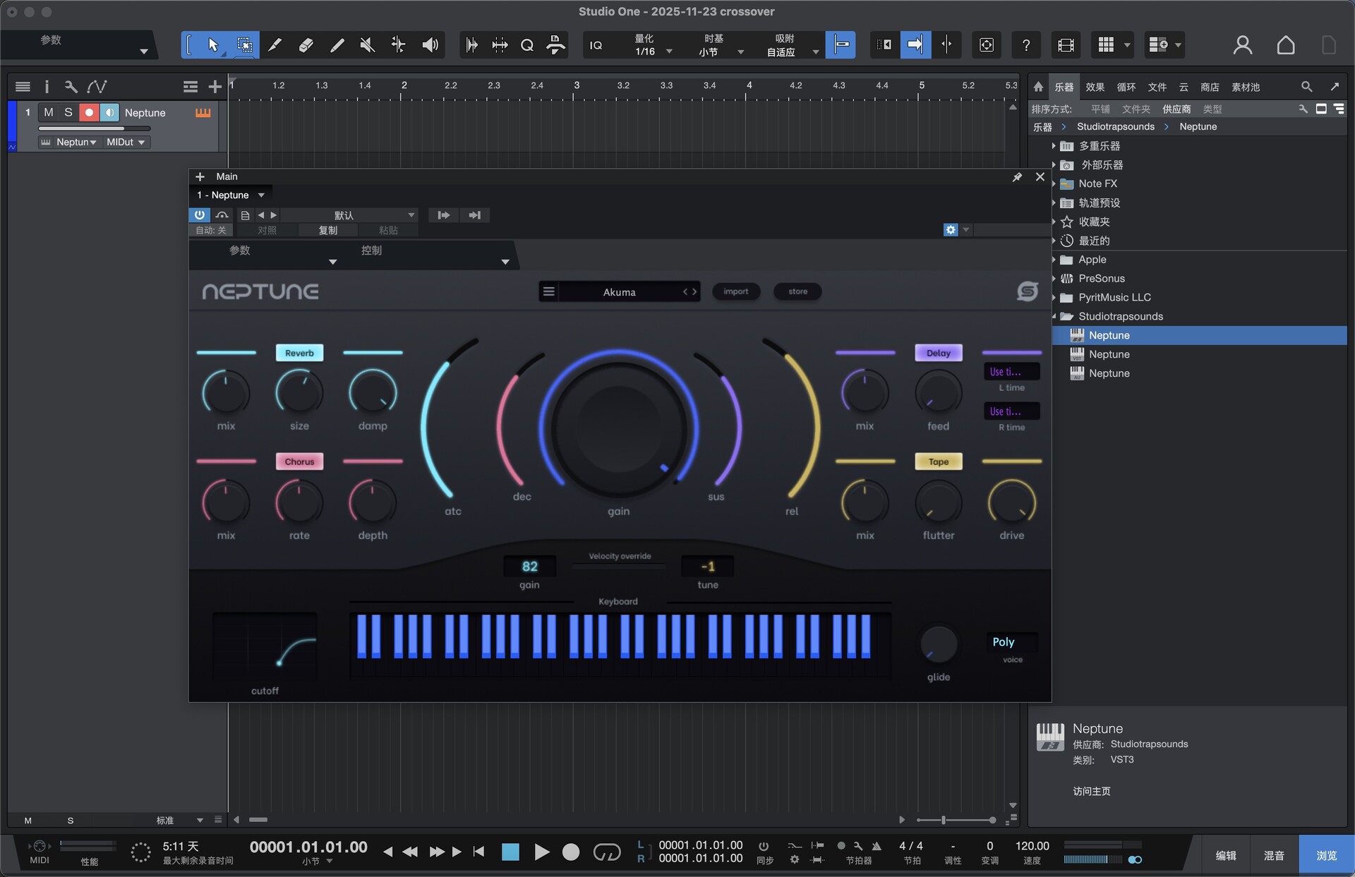 直观的界面:Neptune 的用户友好界面让您可以快速浏览和调整音色,使制作过程流畅高效。无论您是经验丰富的制作人还是新手,Neptune 都能提供您将音乐创意变为现实所需的工具。产品详情:默认音色库